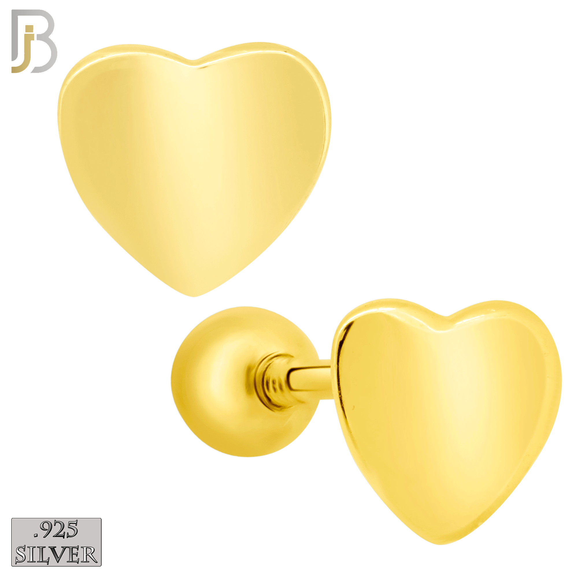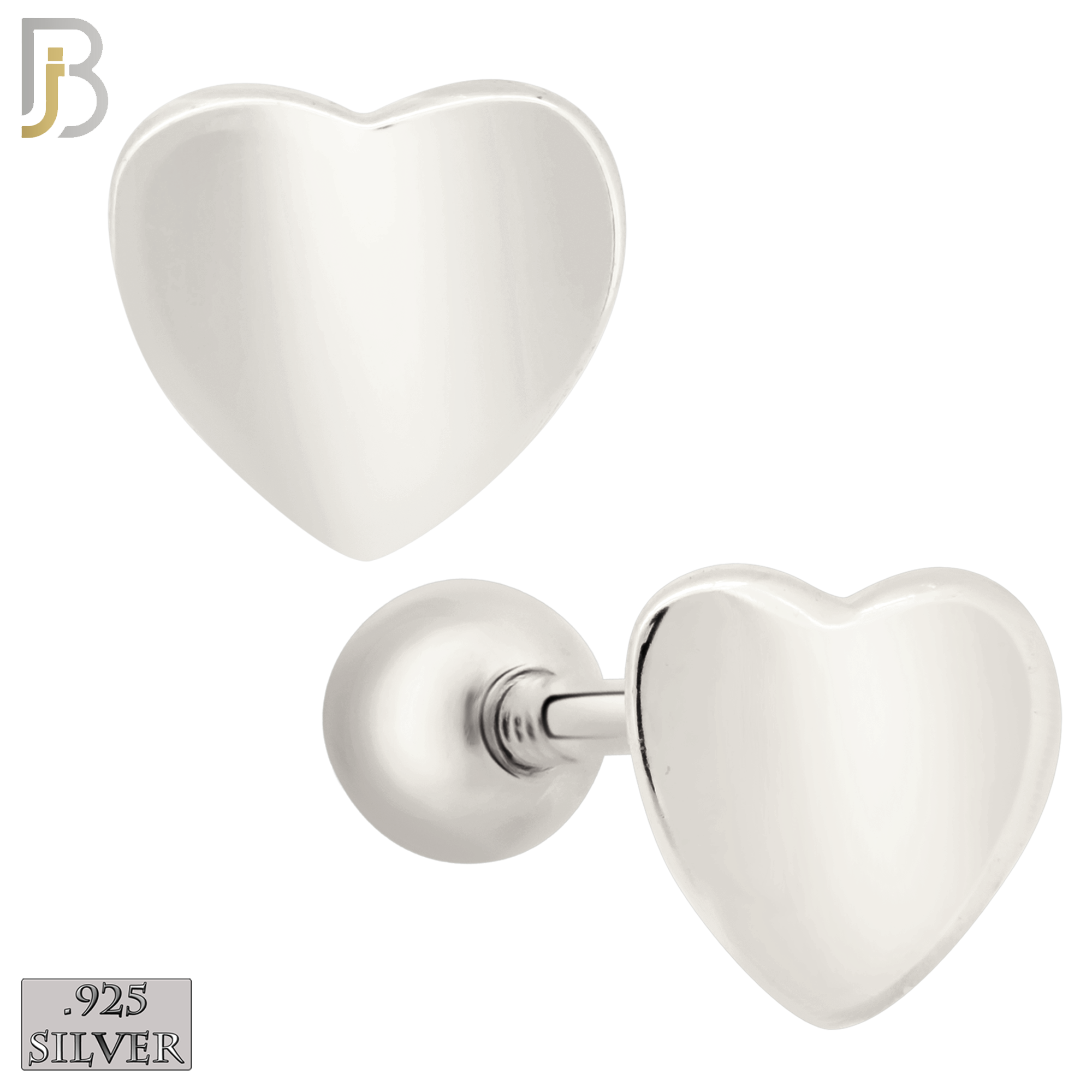 Screw Ball Back – .925 Sterling Silver Plain Heart Design Earring Stud