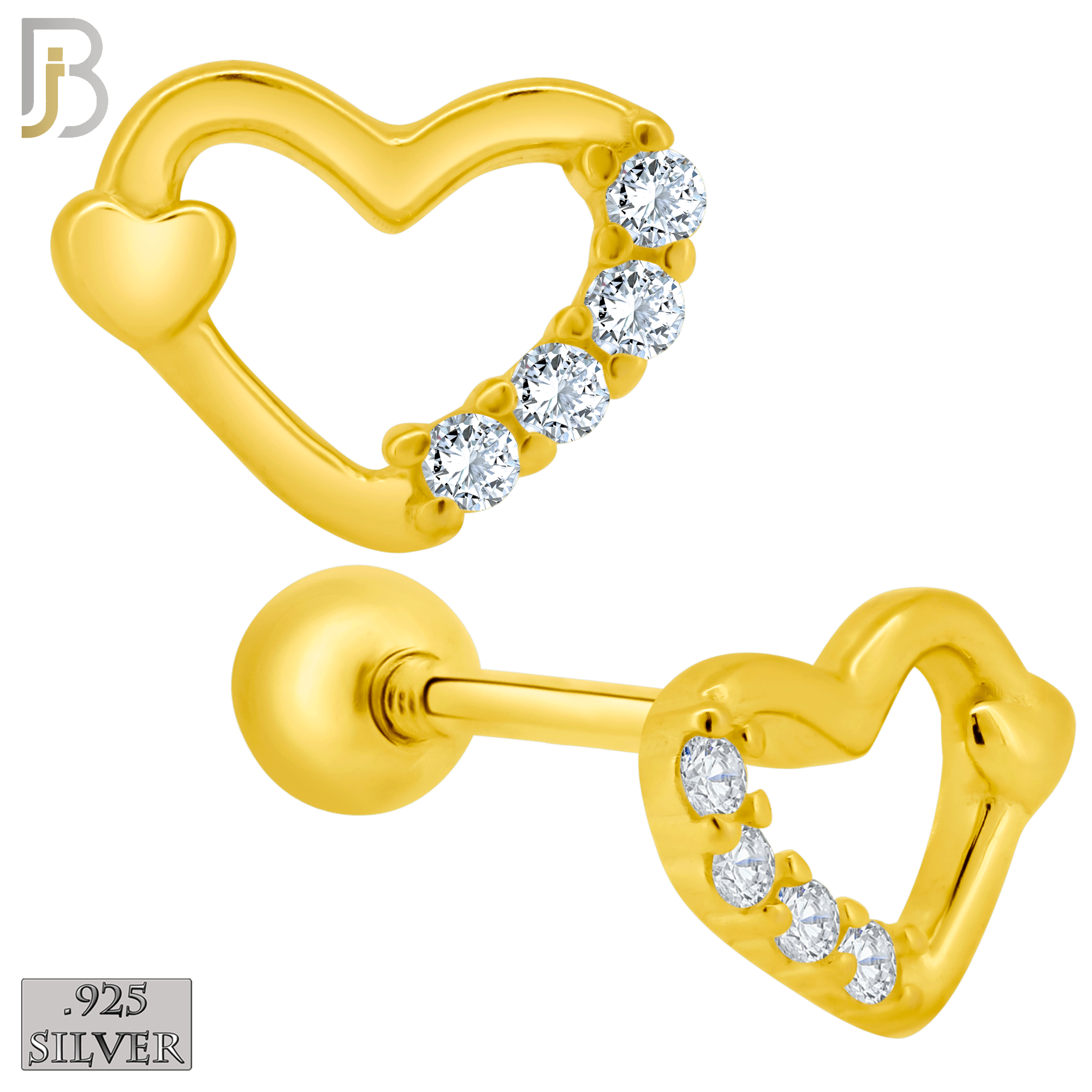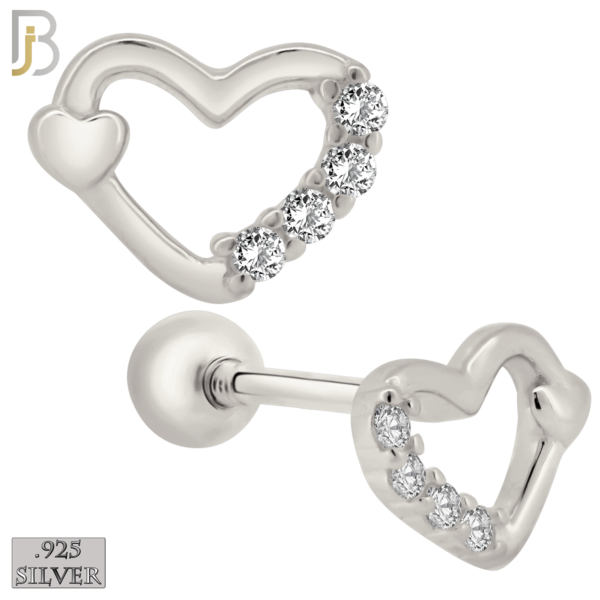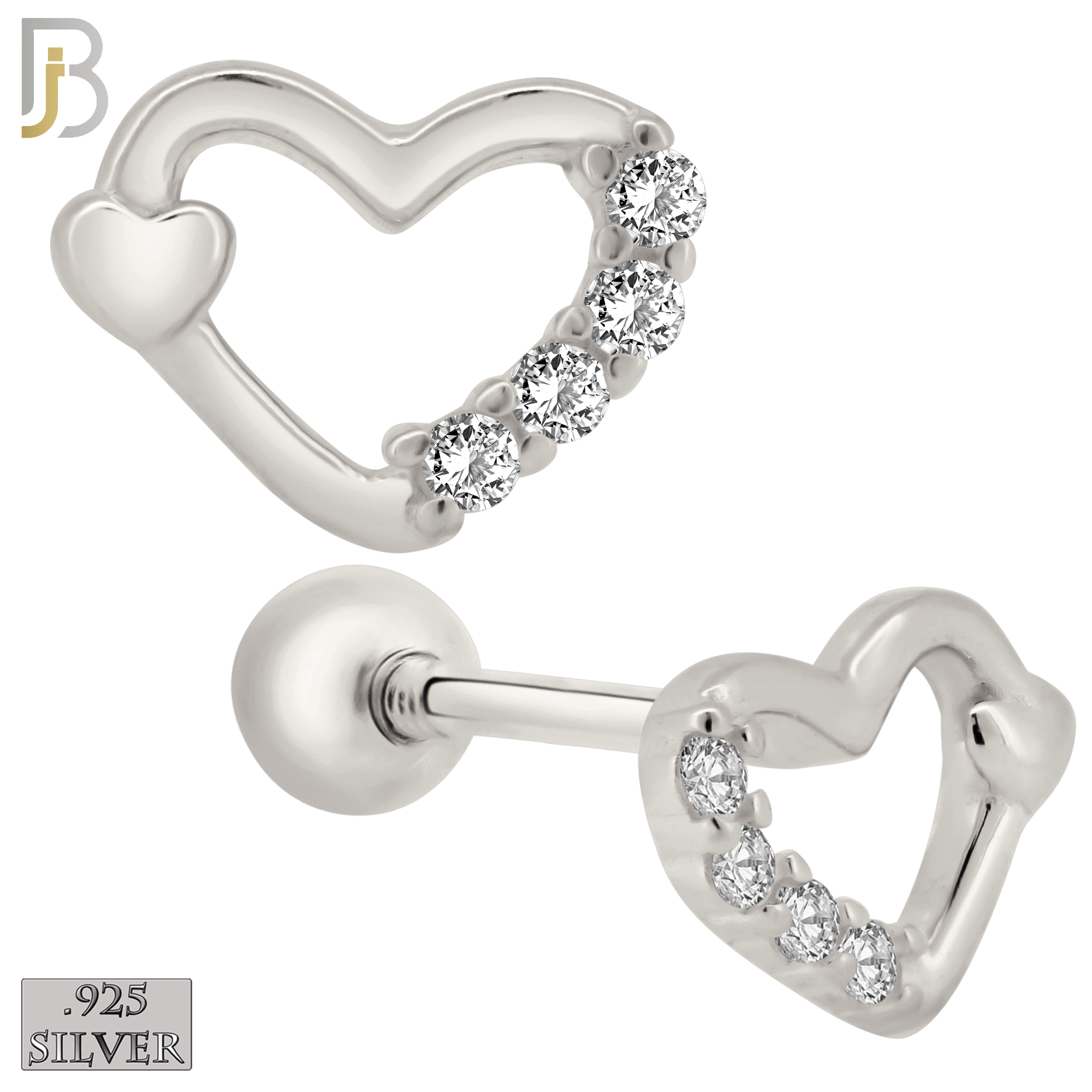 Screw Ball Back – .925 Sterling Silver Heart Design Earring Stud with Clear Zircon