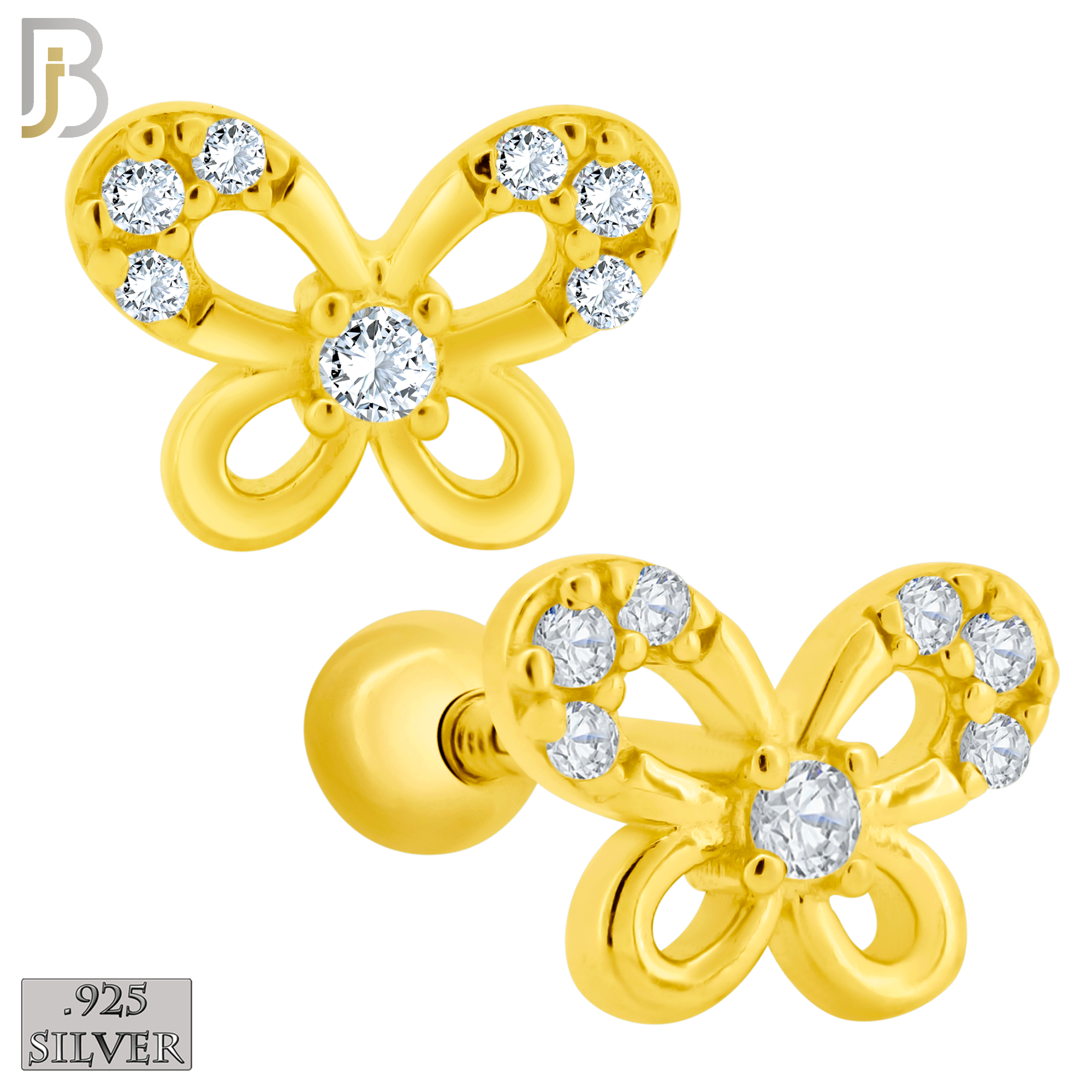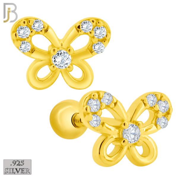 Screw Ball Back – .925 Sterling Silver Butterfly Design Earring Stud with Clear Zircon