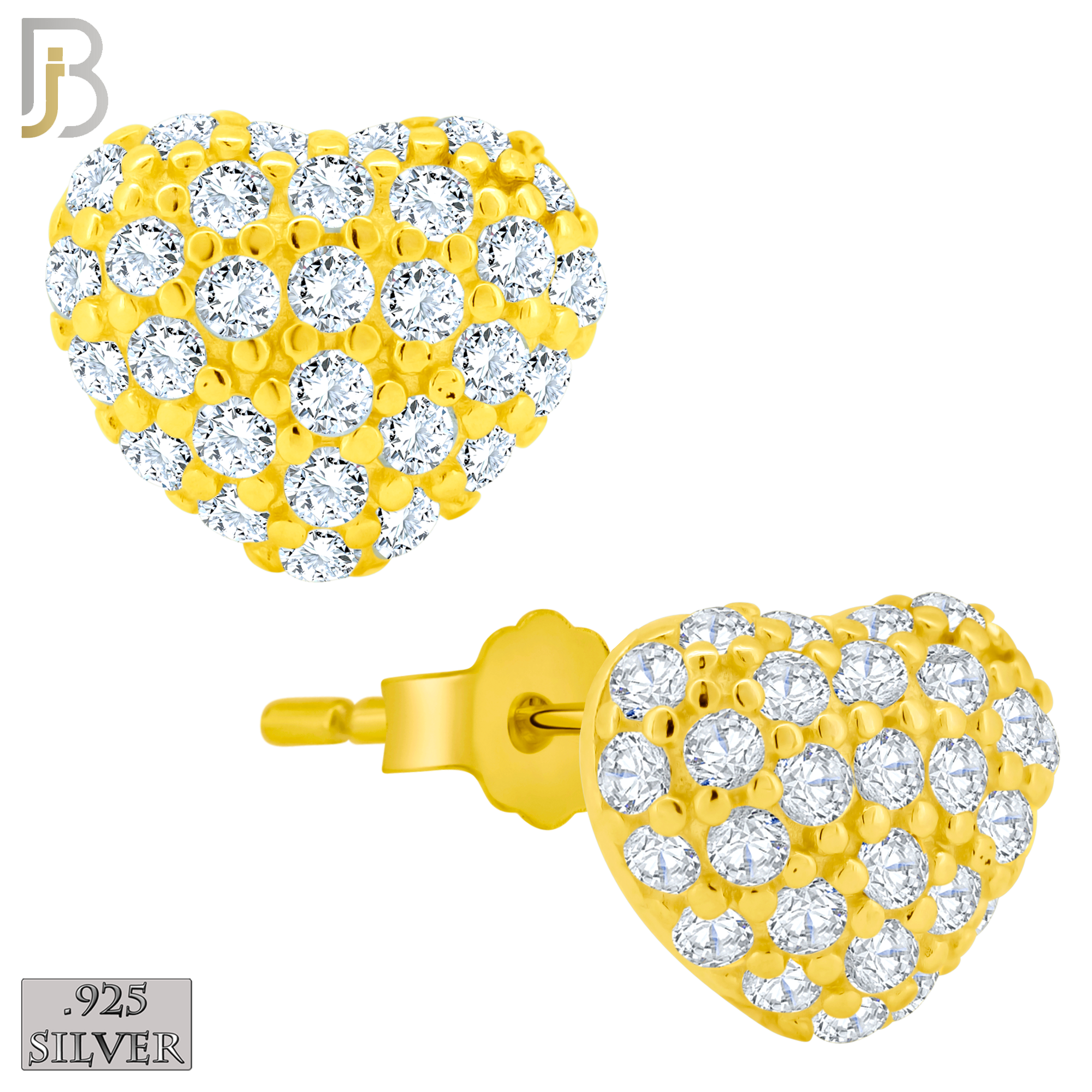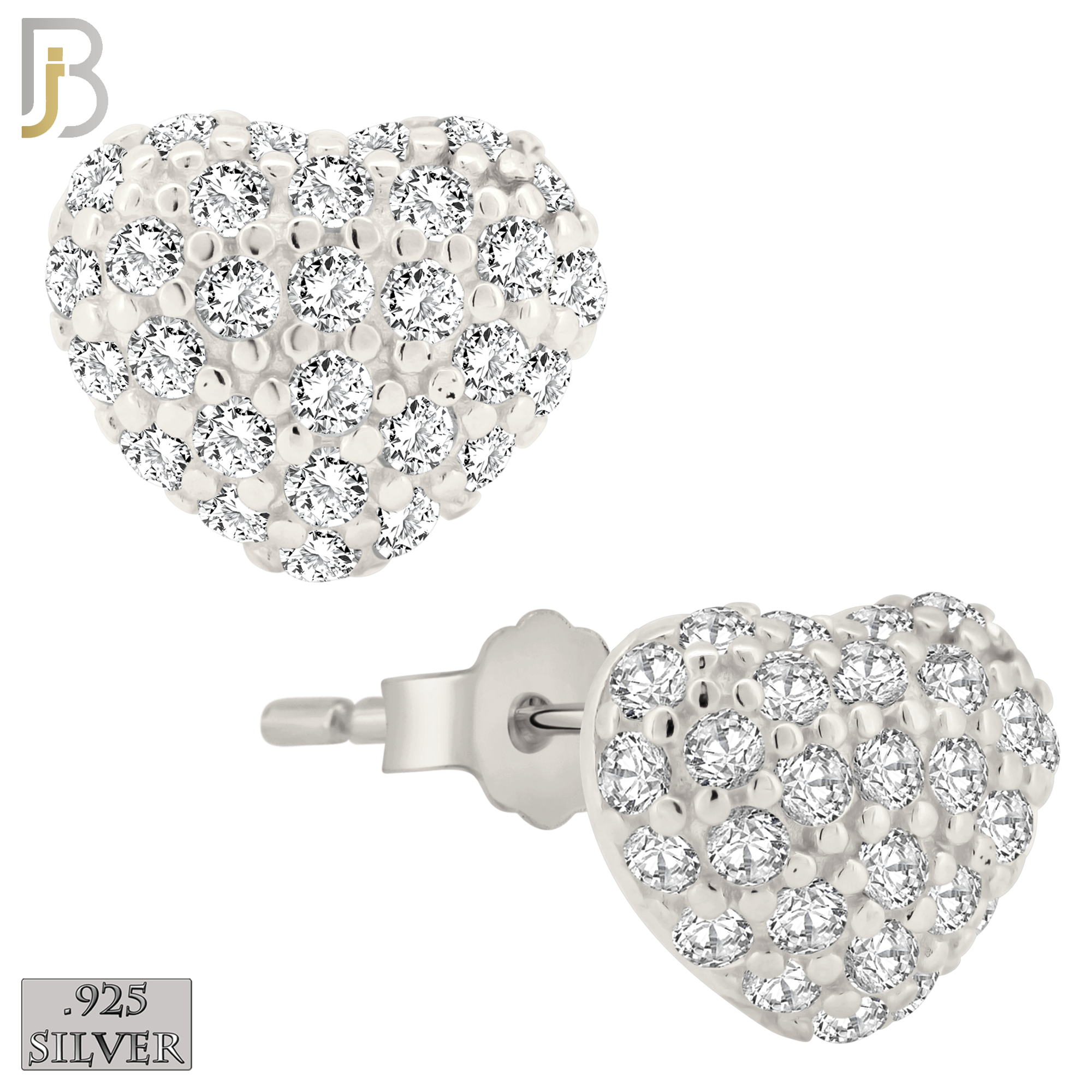 Push Back – .925 Sterling Silver Heart Stud Earring with Clear Zircon Design