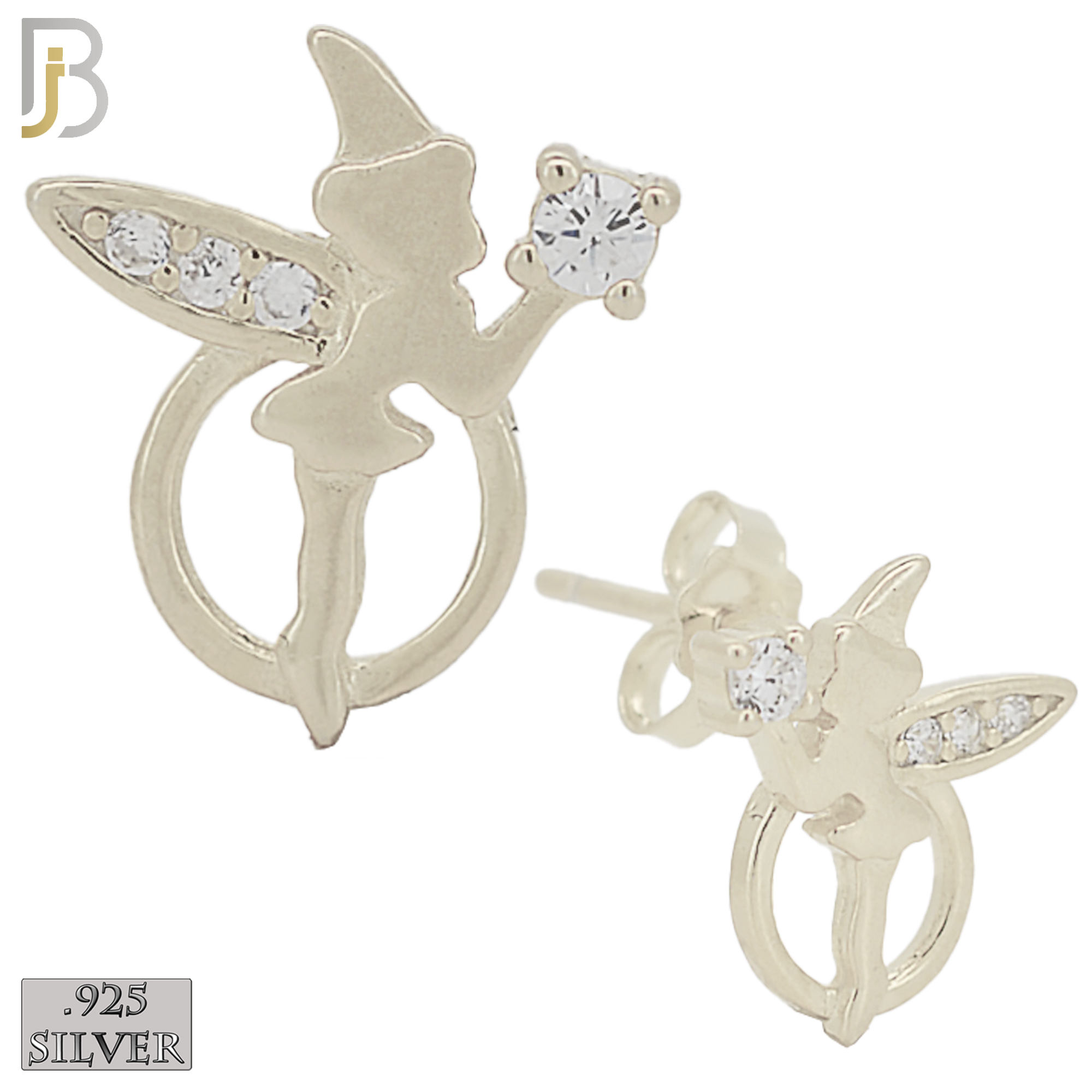 .925 Sterling Silver Fairy Design Earring Stud with Clear Zircon