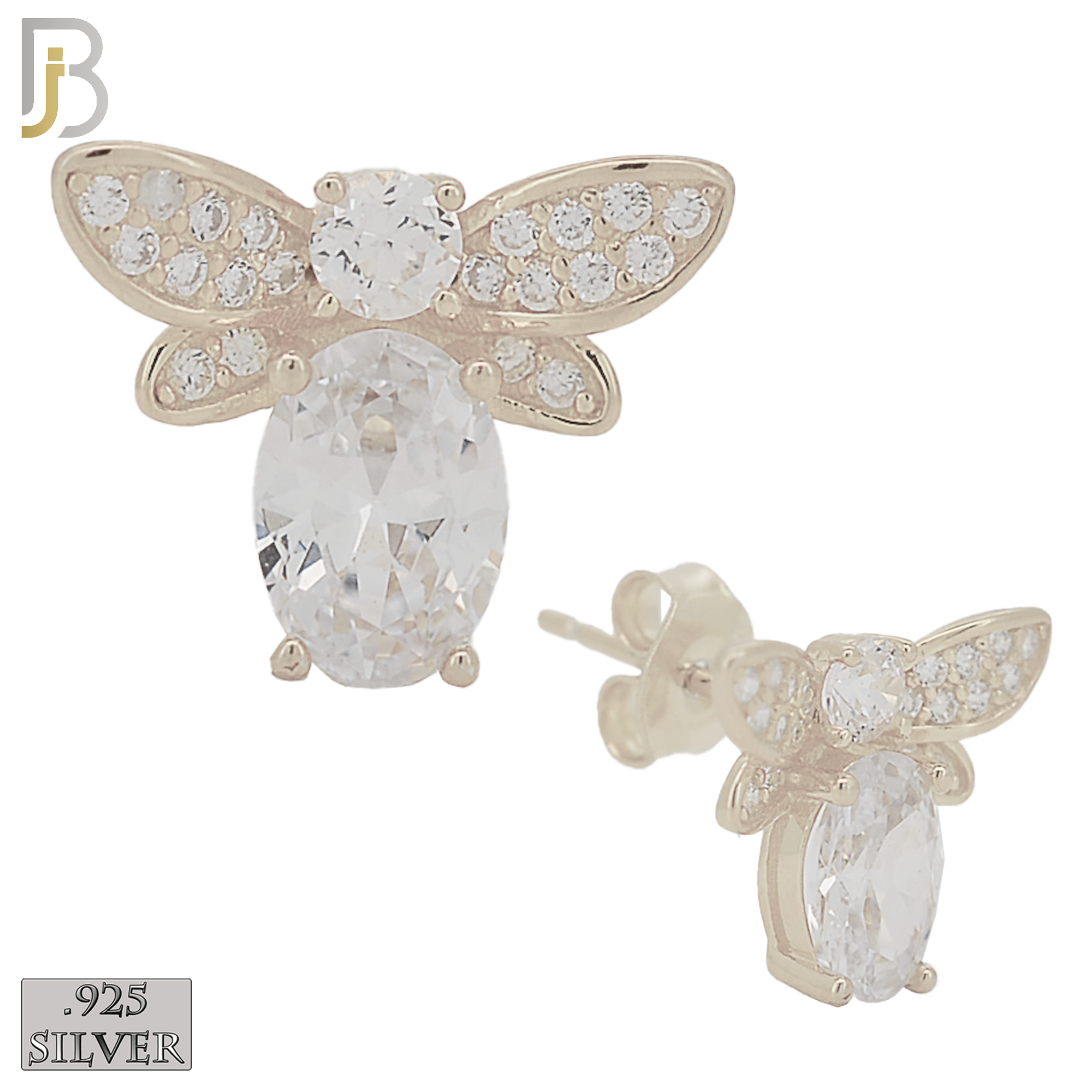 .925 Sterling Silver Bee Design Earring Stud with Zircon for Bee’s Body and Head