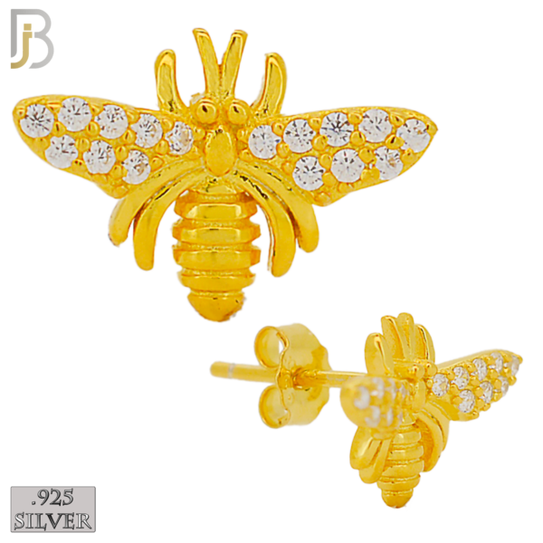 .925 Sterling Silver Bee Design Earring Stud with Zircon
