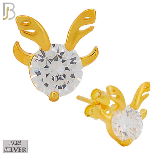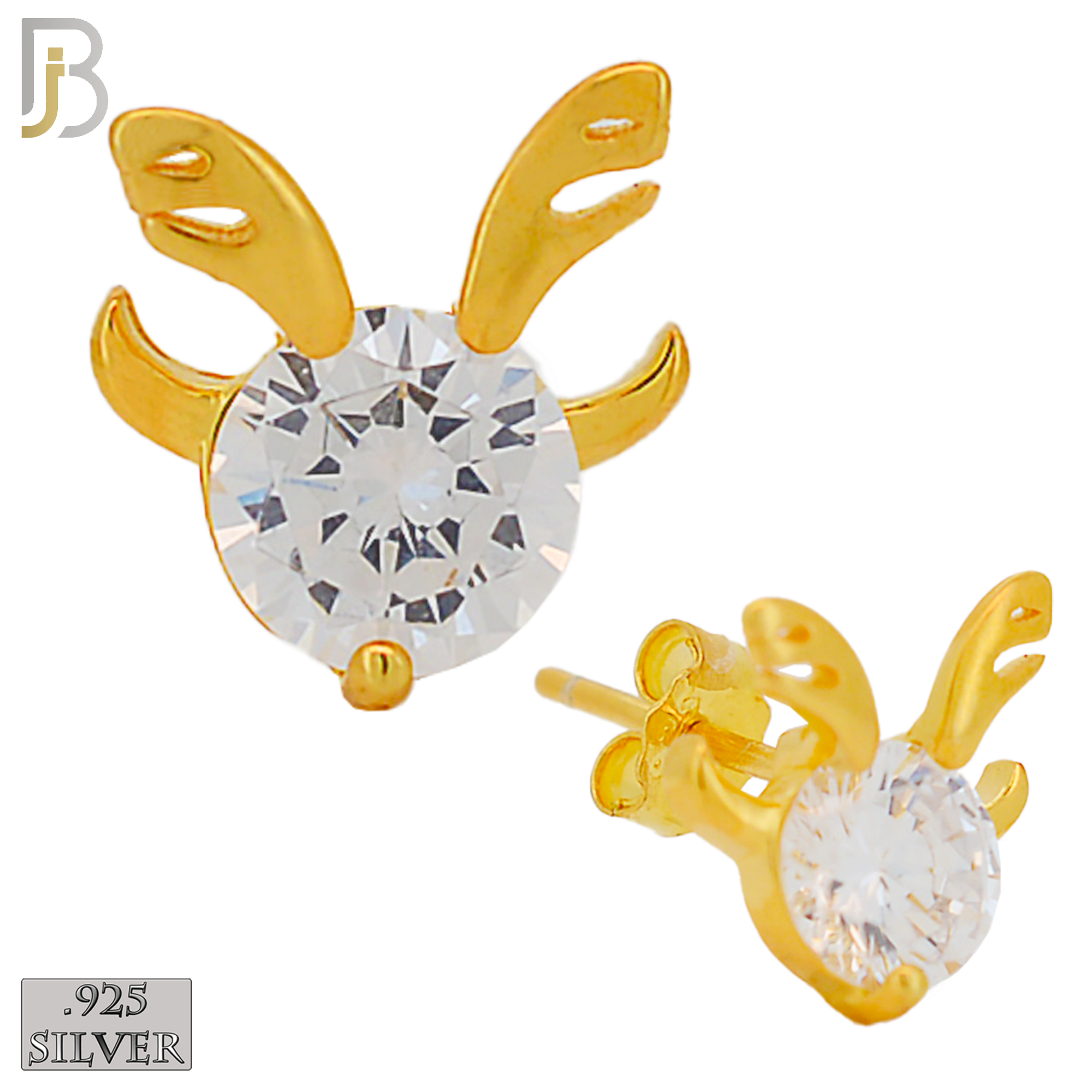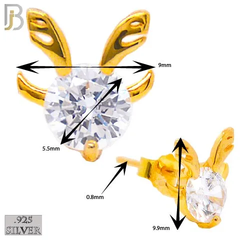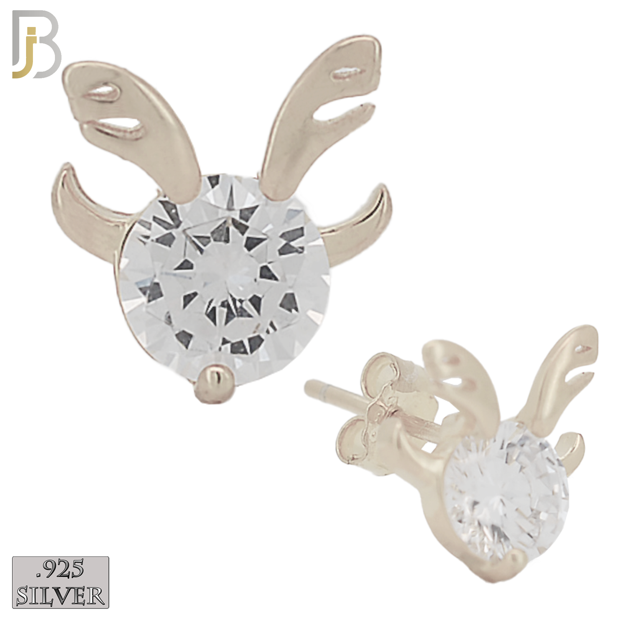 .925 Sterling Silver Reindeer Earring Stud with Zircon for Head