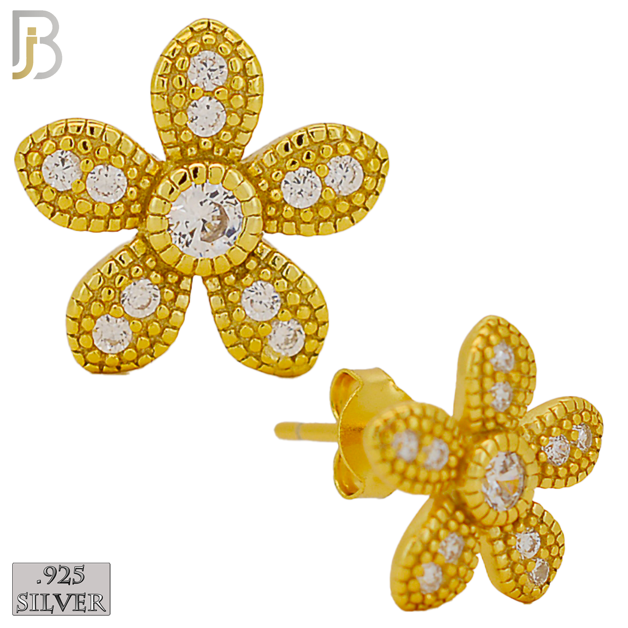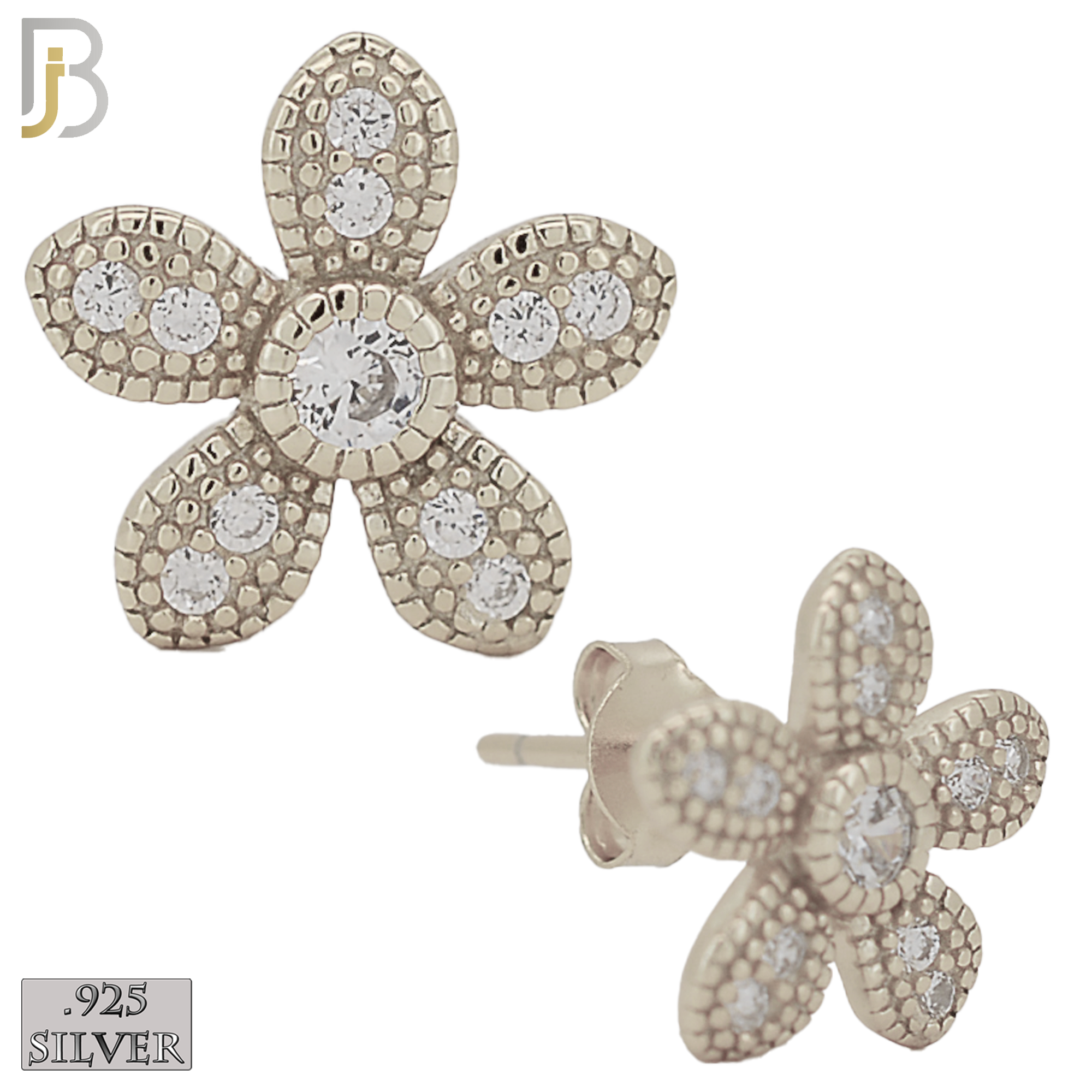 .925 Sterling Silver Flower Design Earring Stud with Zircon