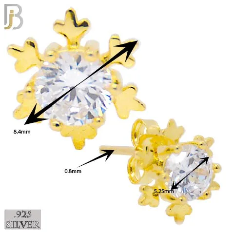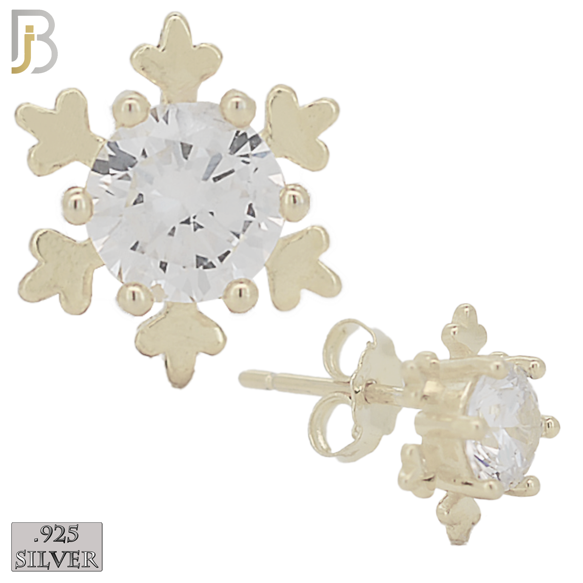 .925 Sterling Silver Snowflake Design Earring Stud with Zircon