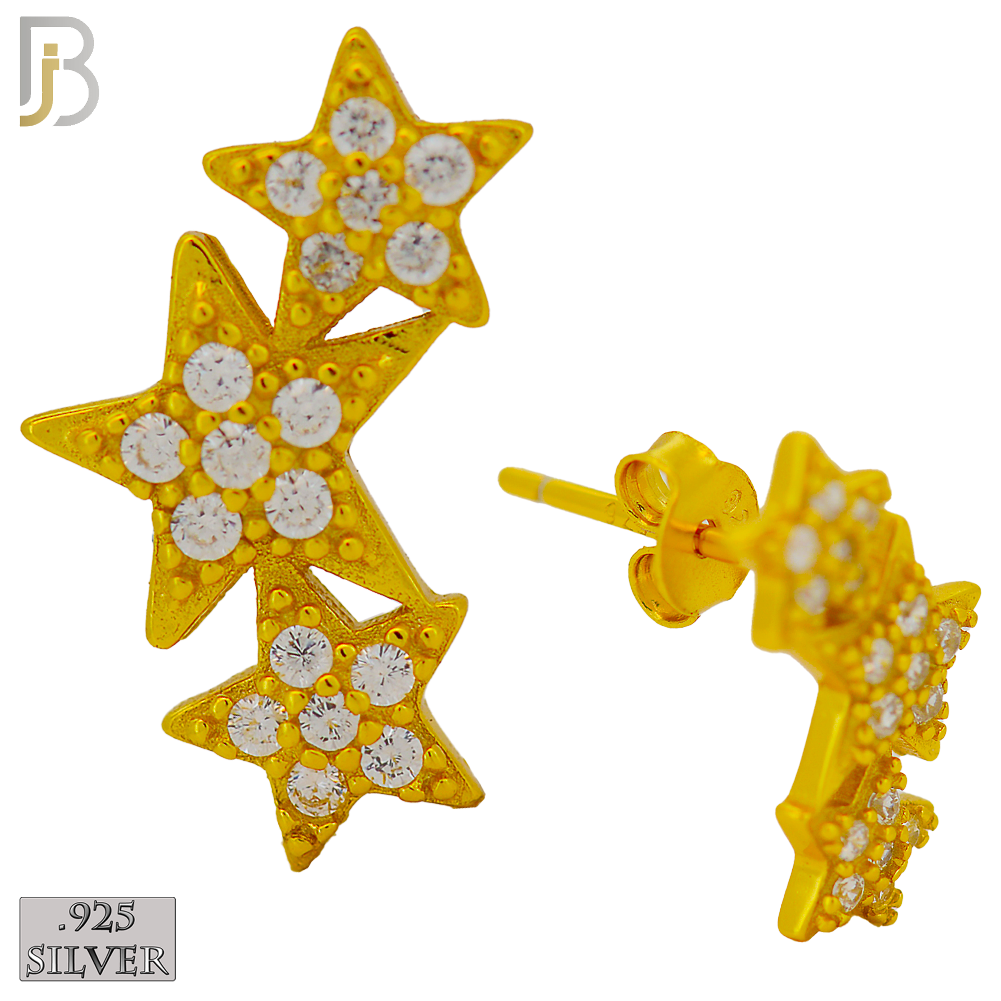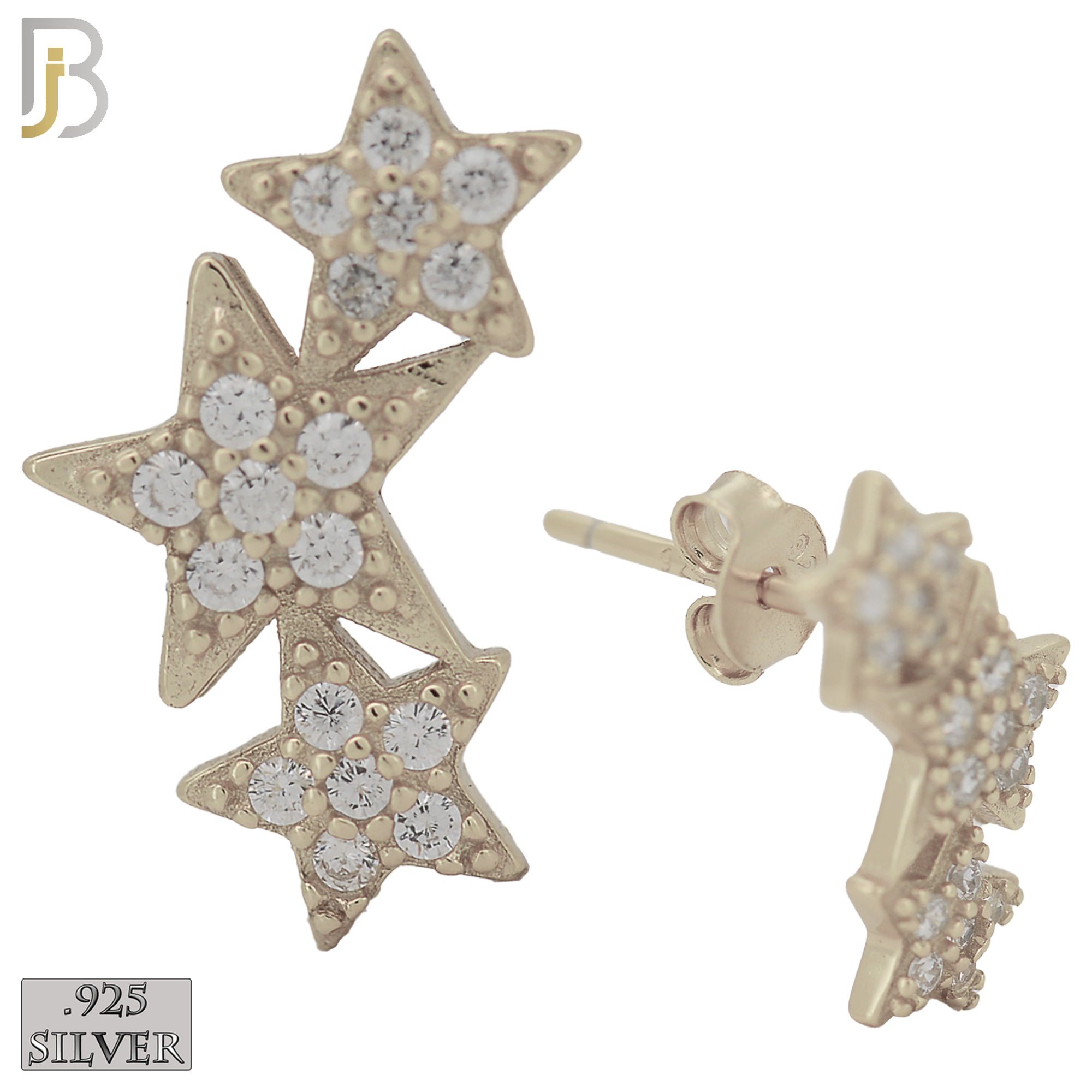 ES242 – .925 Sterling Silver Three Stars with Zircon Design Earring Stud quantity