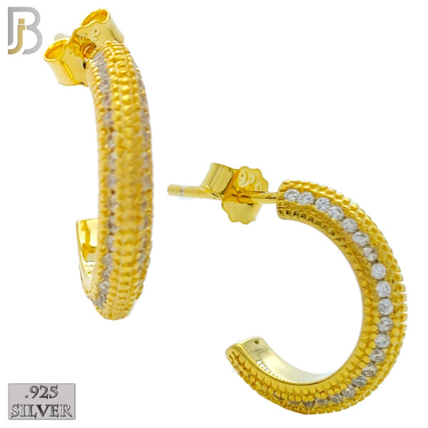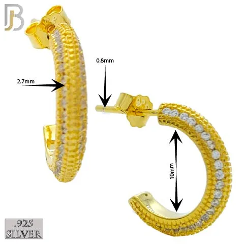 ES259 – .925 Sterling Silver Half Hoops with Multi Zircon in the Side Design Earrings Stud