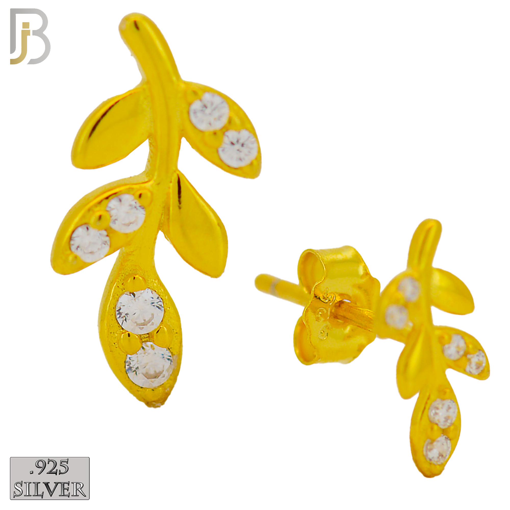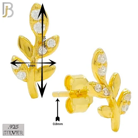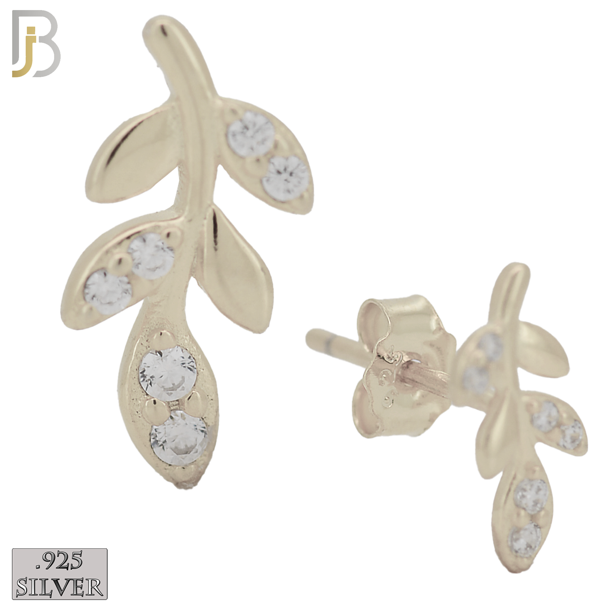 .925 Sterling Silver Vine Leaf with Zircon Design Earrings Stud