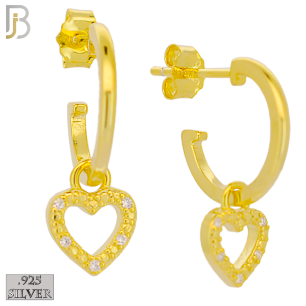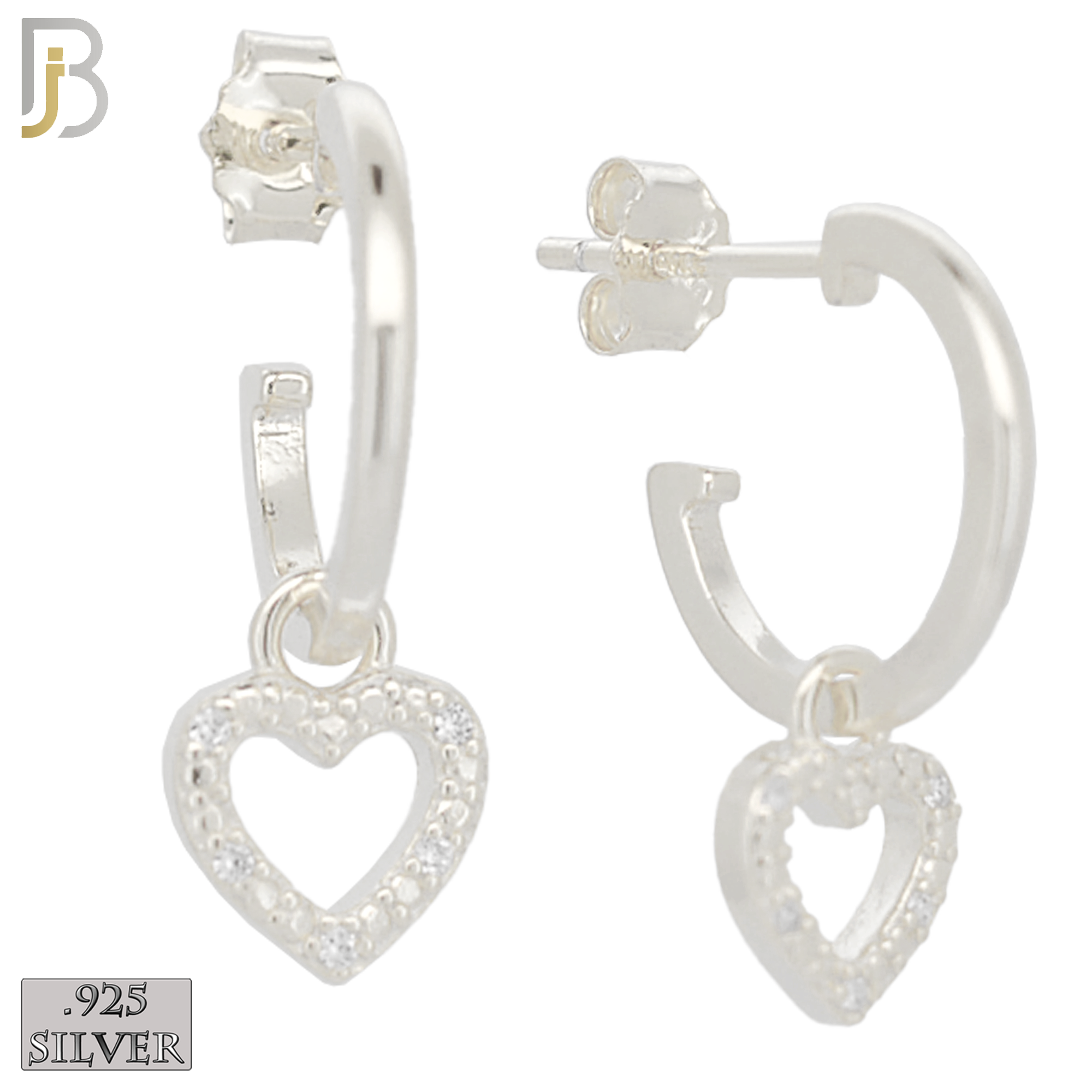.925 Sterling Silver Half Hoops with Dangling Hollow Heart with Zircon Design Earrings Stud