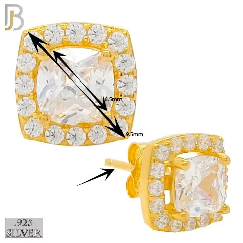 .925 Sterling Silver Rounded Edge Square with Multi Zircon Design Earrings Stud