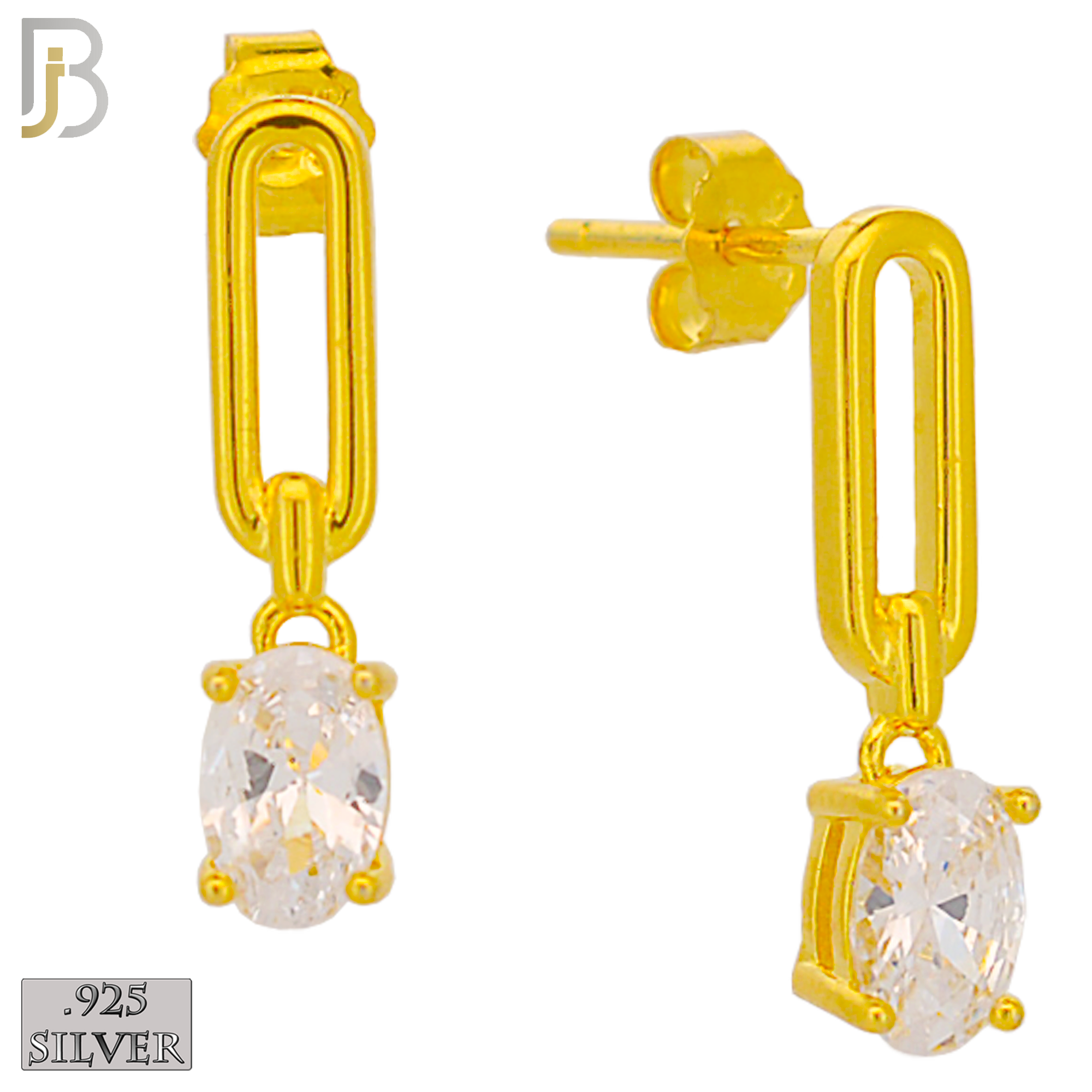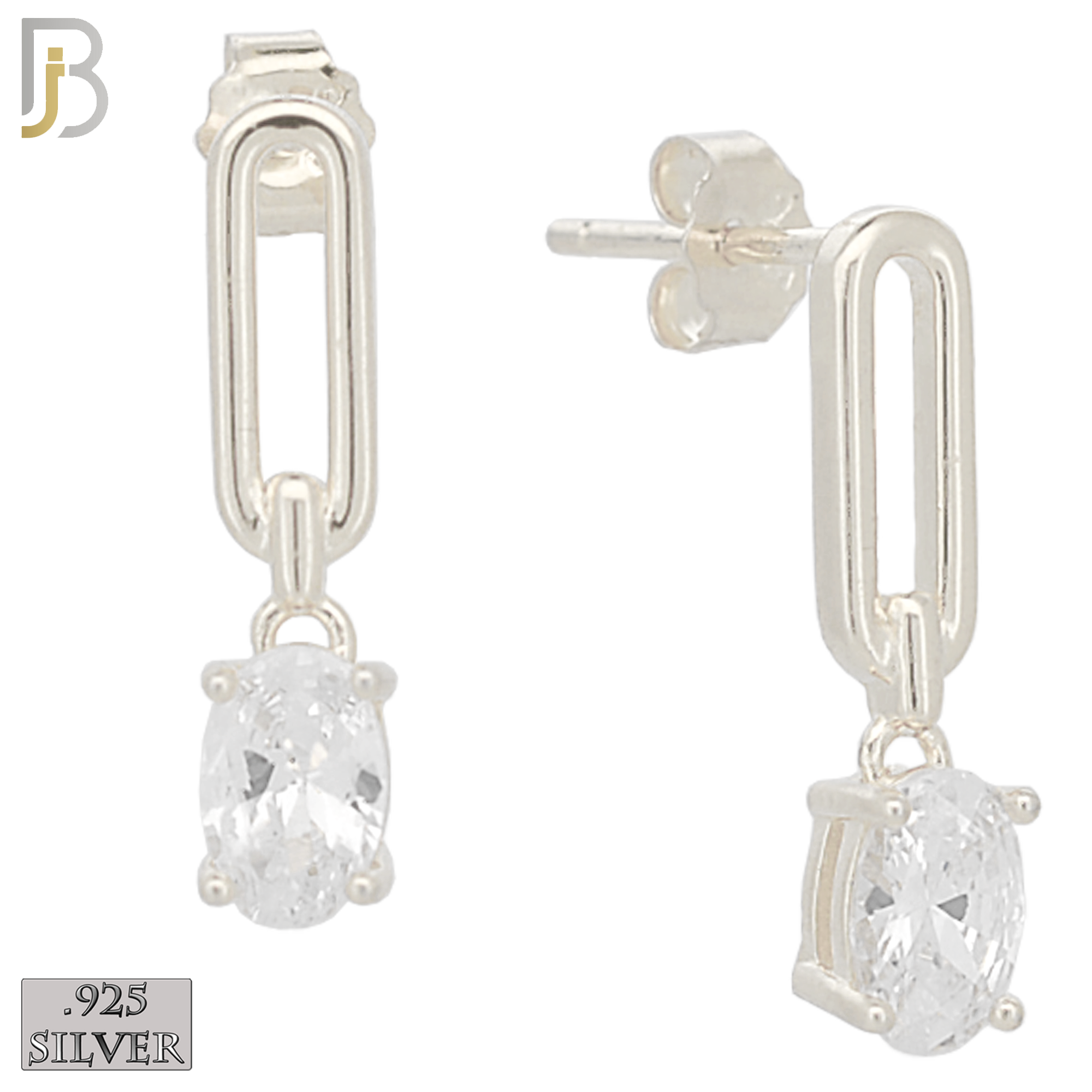 .925 Sterling Silver Oval Top with Dangling Prong Oval Zircon Design Earrings Stud
