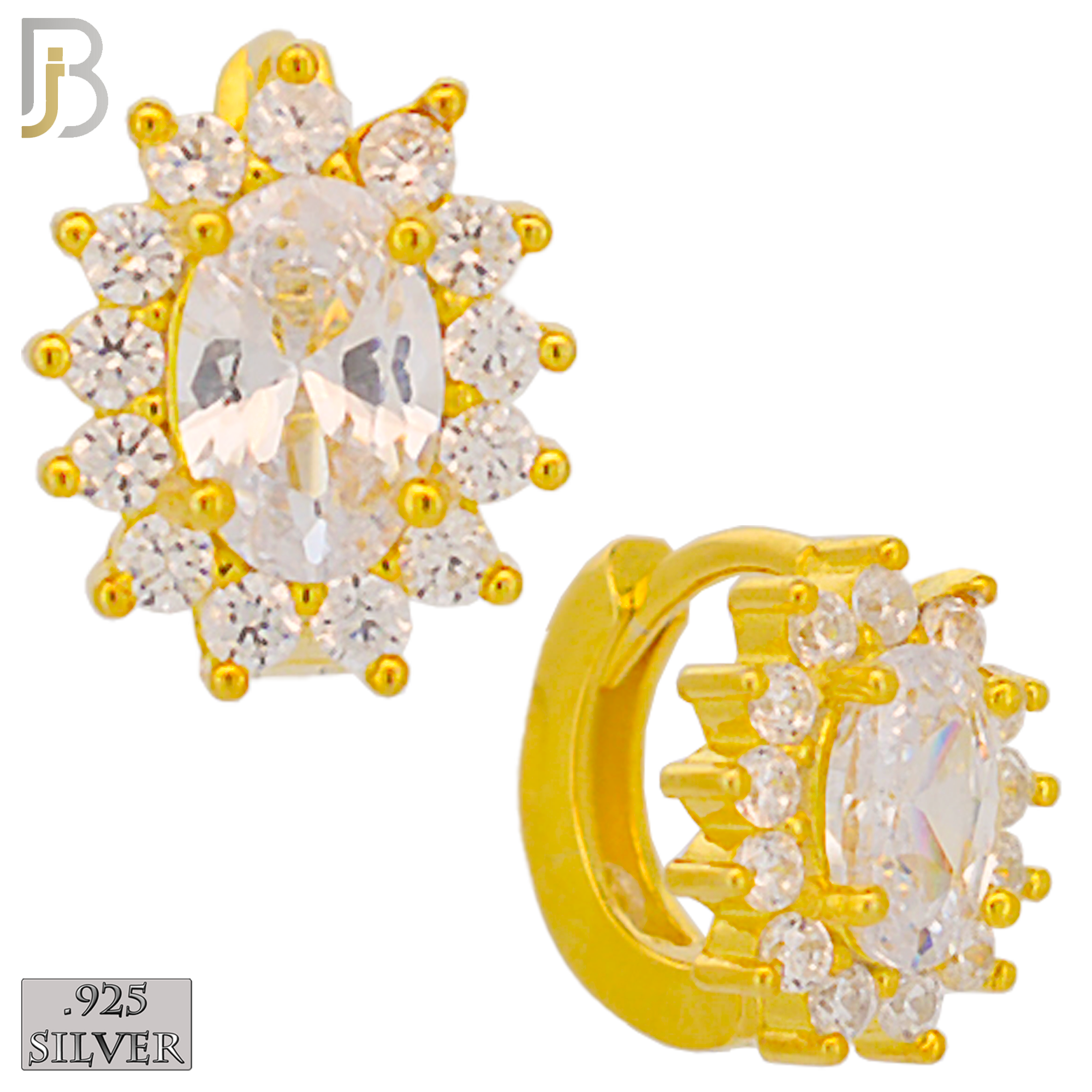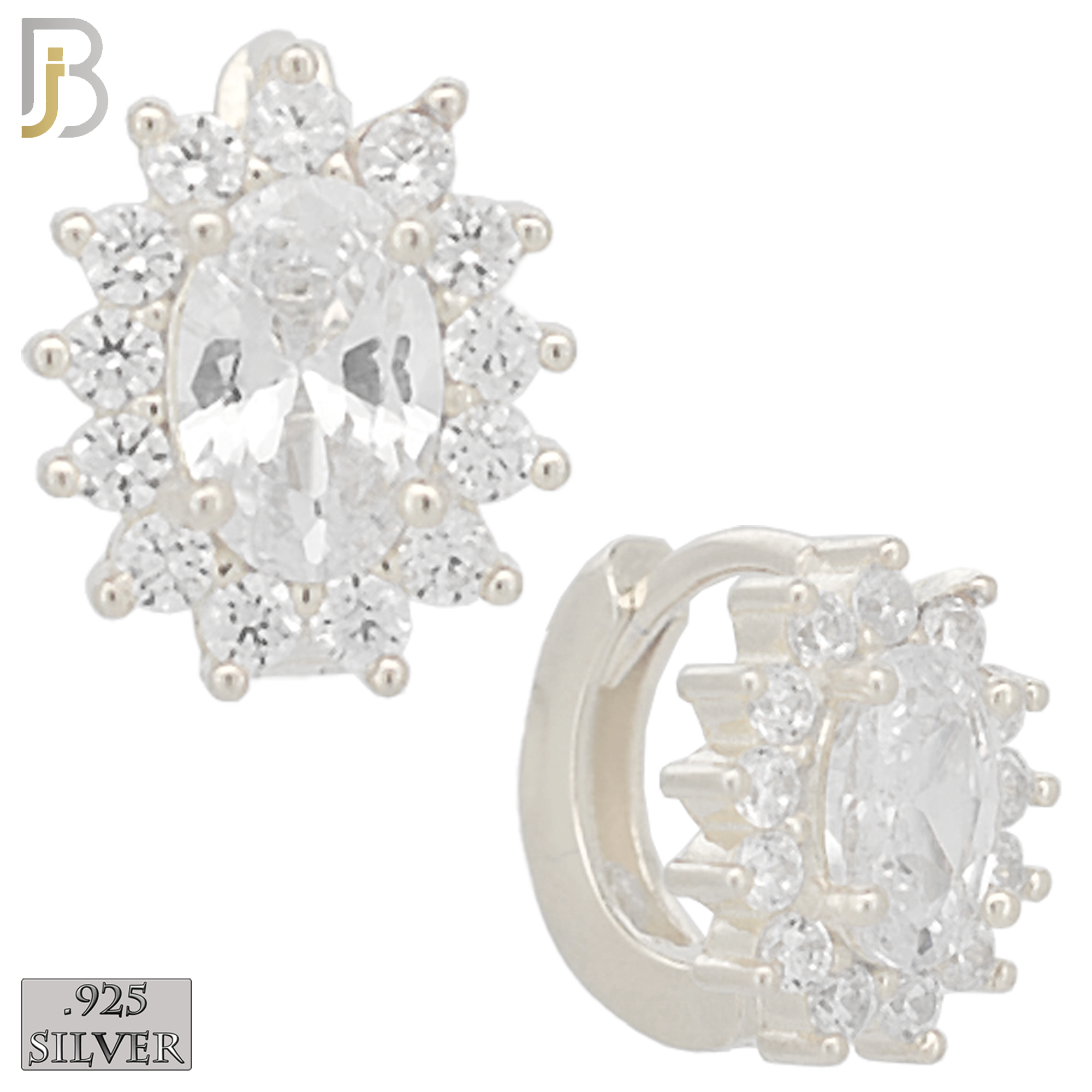 .925 Sterling Silver Oval Prong Multi Zircon Design Huggie Hoops Earrings Stud