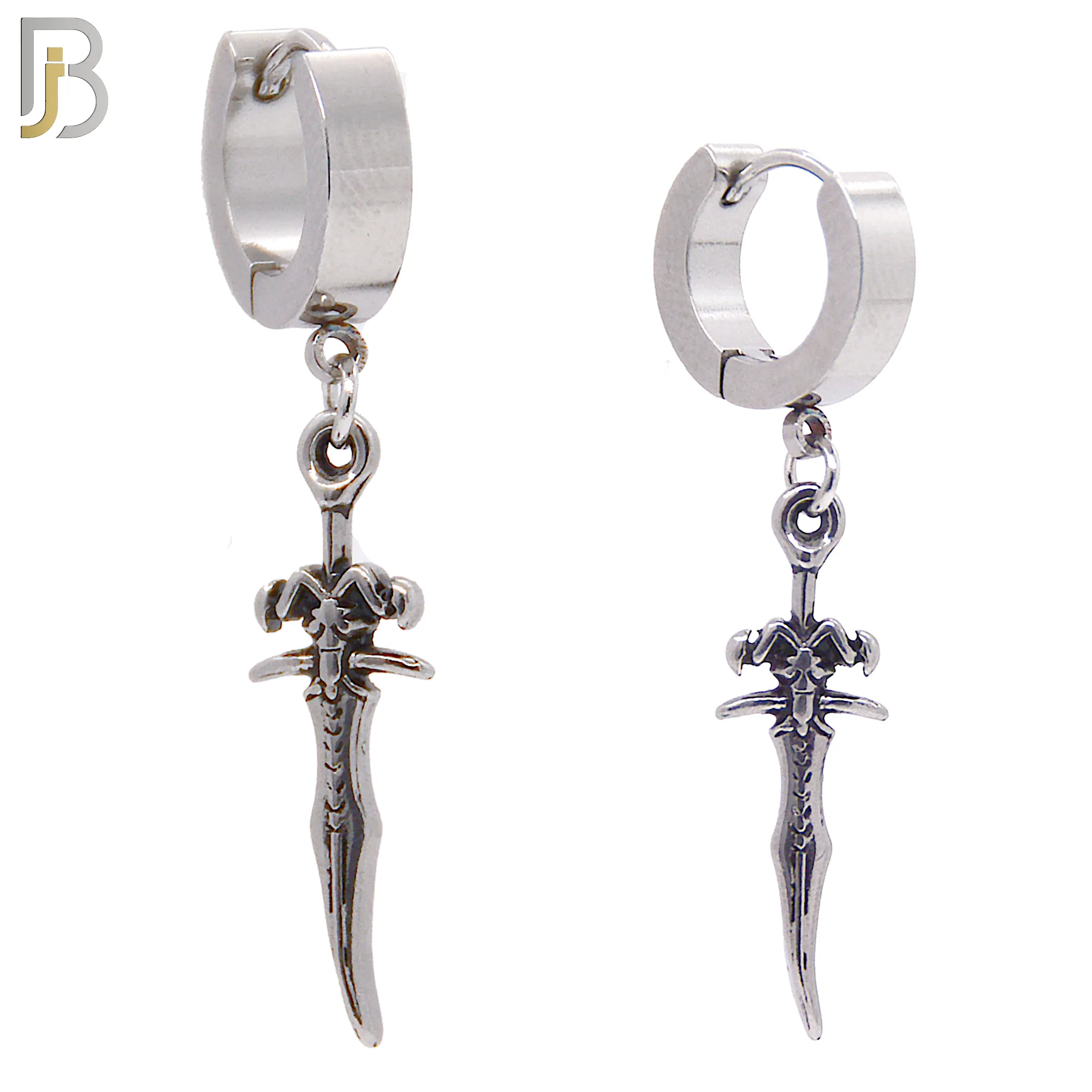 ES290 – 316L Stainless Steel Dangling Ornate Medieval Dagger Huggies Hoop Earrings