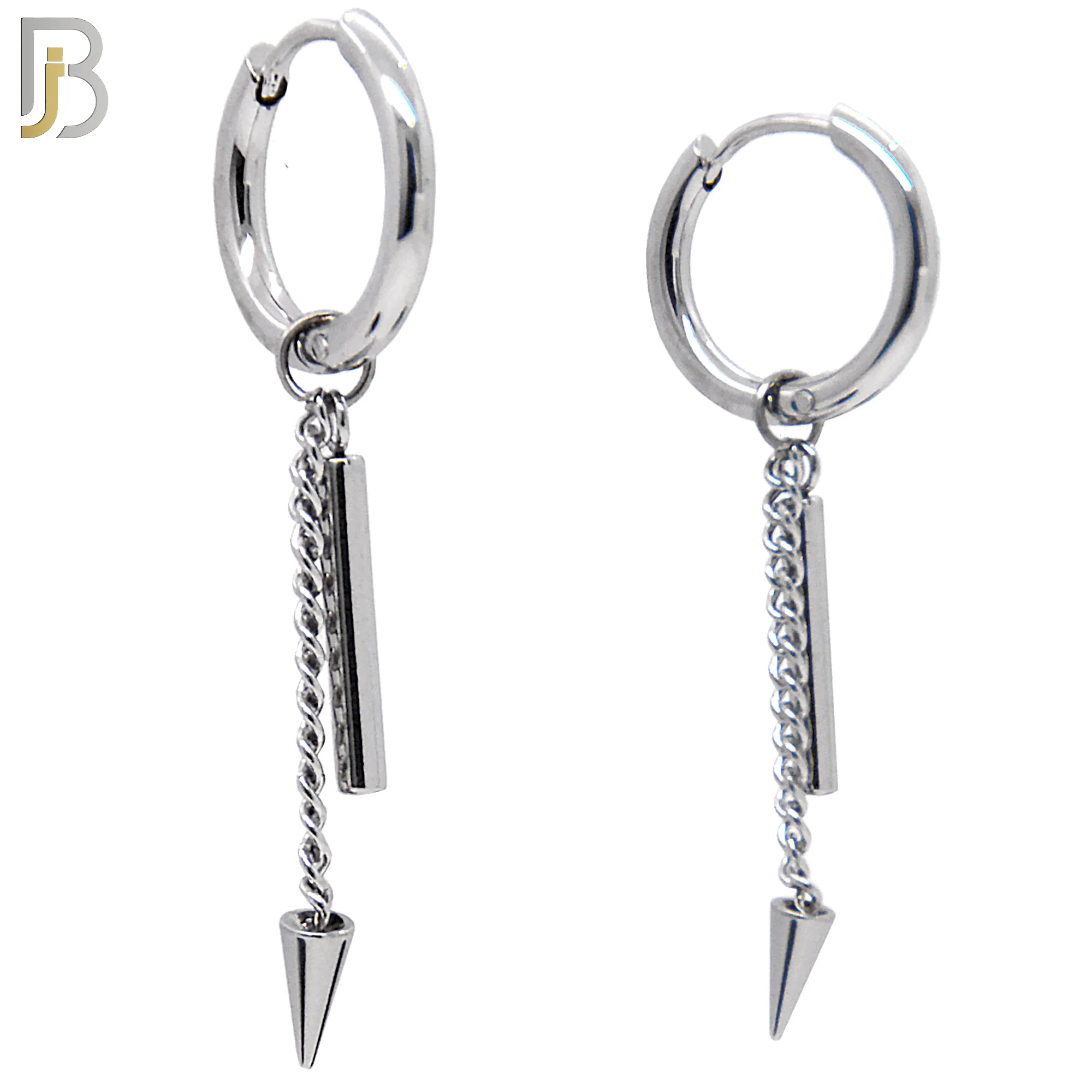 316L Stainless Steel Long Dangle Spike and Horizontal Bar Hoop Earrings