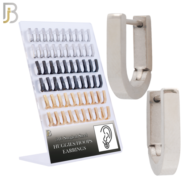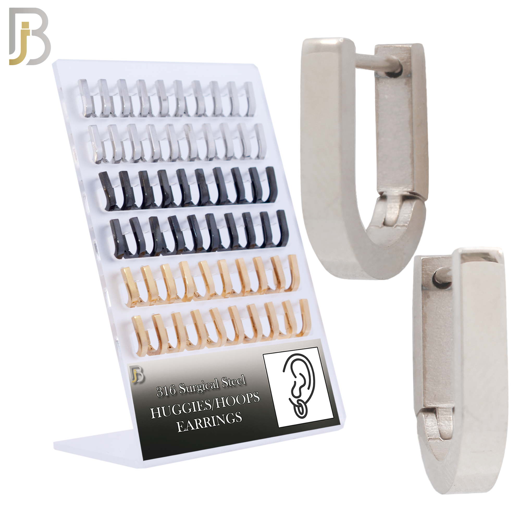 316L Stainless Steel Plain Huggies Straight U-Shape Clip On Pack of 30 Pairs