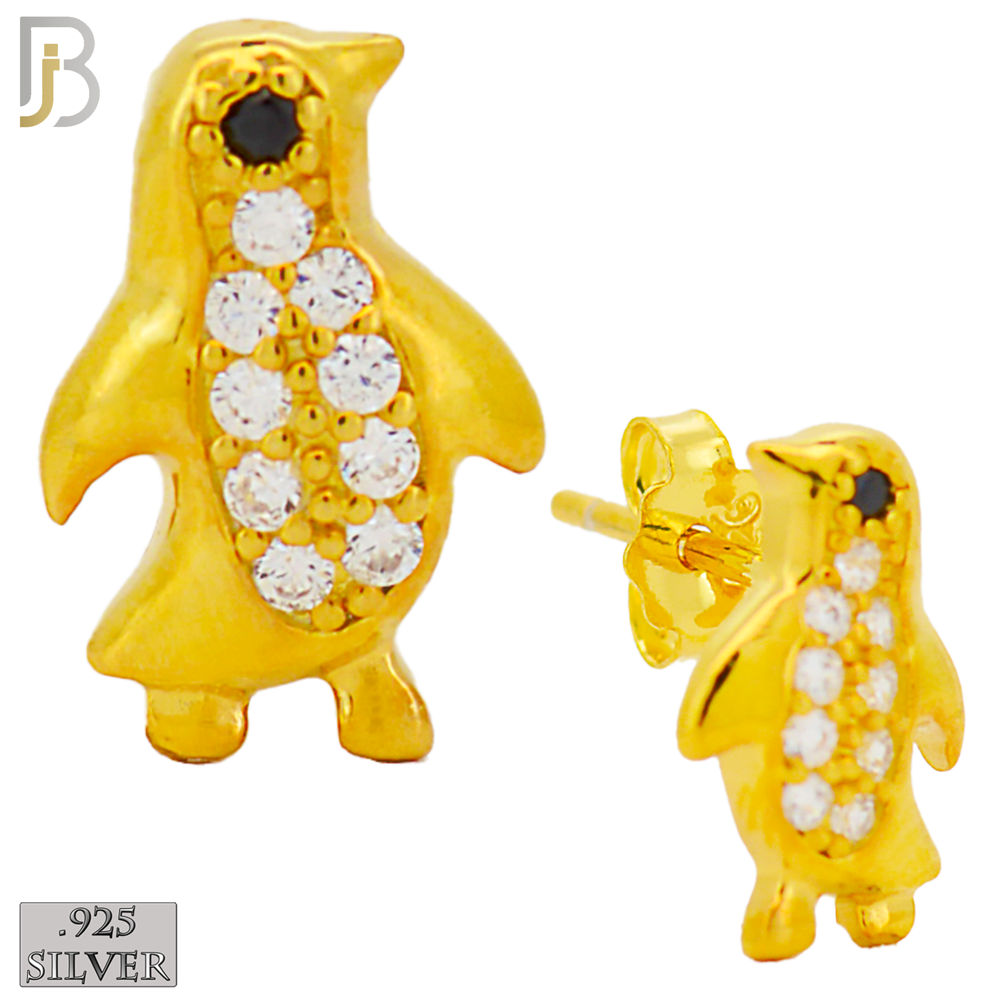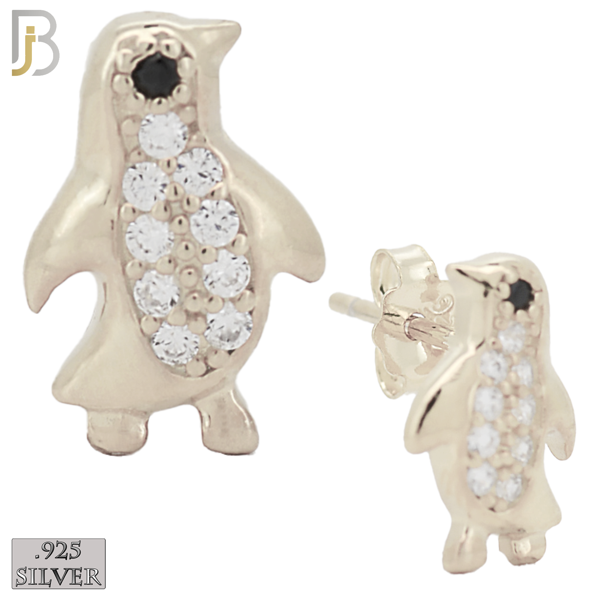 .925 Sterling Silver Penguin with Zircon Design Stud Earrings