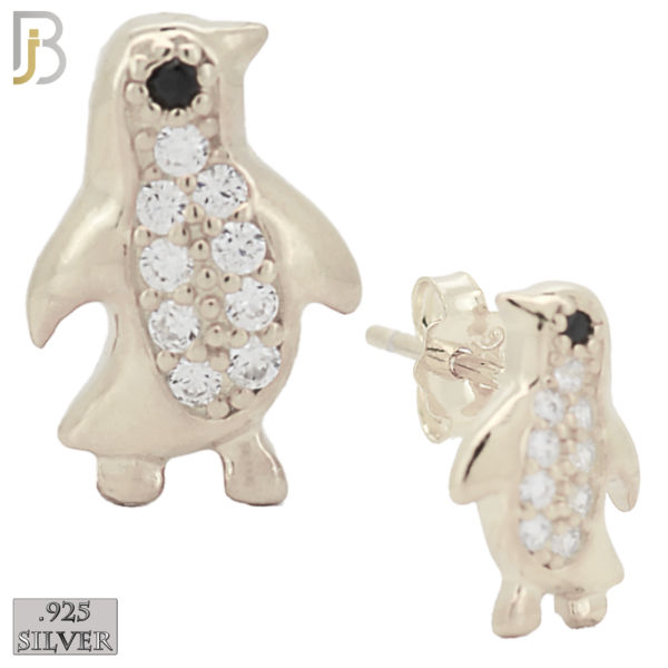 ES303 – .925 Sterling Silver Penguin with Zircon Design Stud Earrings