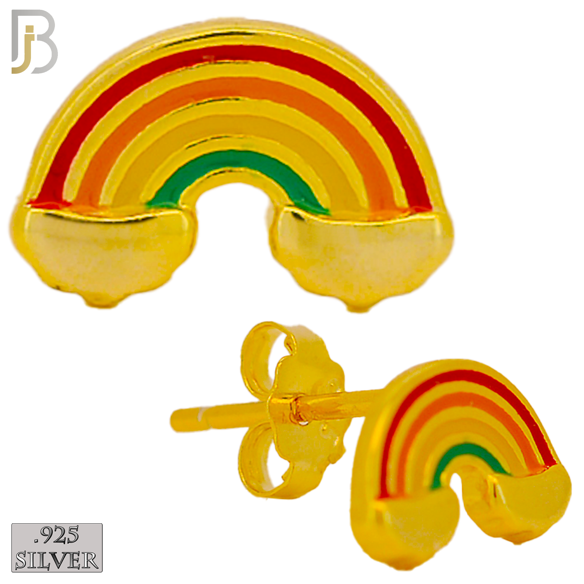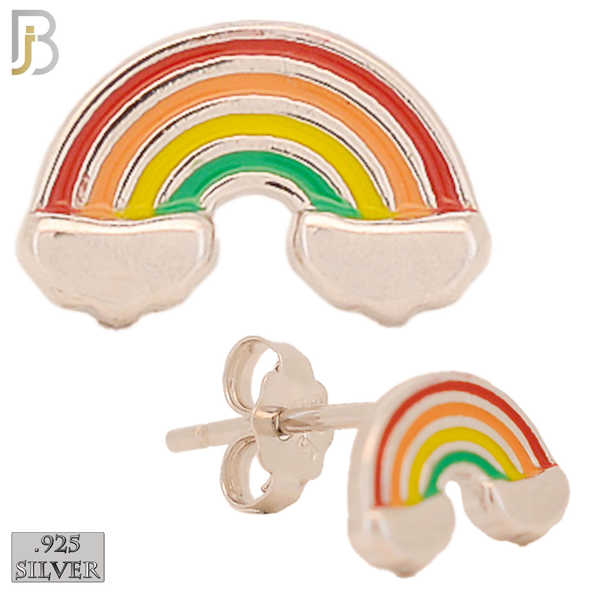 .925 Sterling Silver Colorful Rainbow Design Stud Earrings
