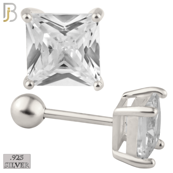 925 Sterling Silver Rhodium Plated Screw Ball Back Stud Earrings Casting Prong Setting with Square Clear Zircon