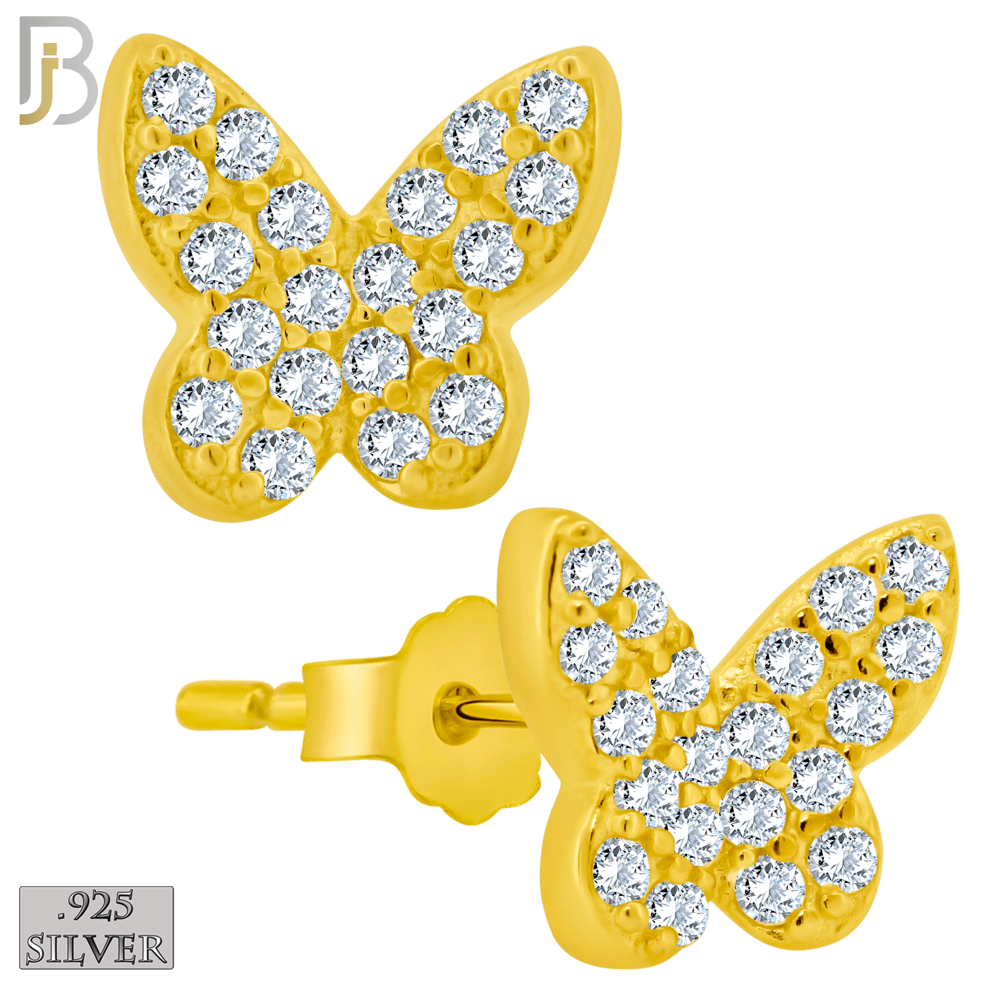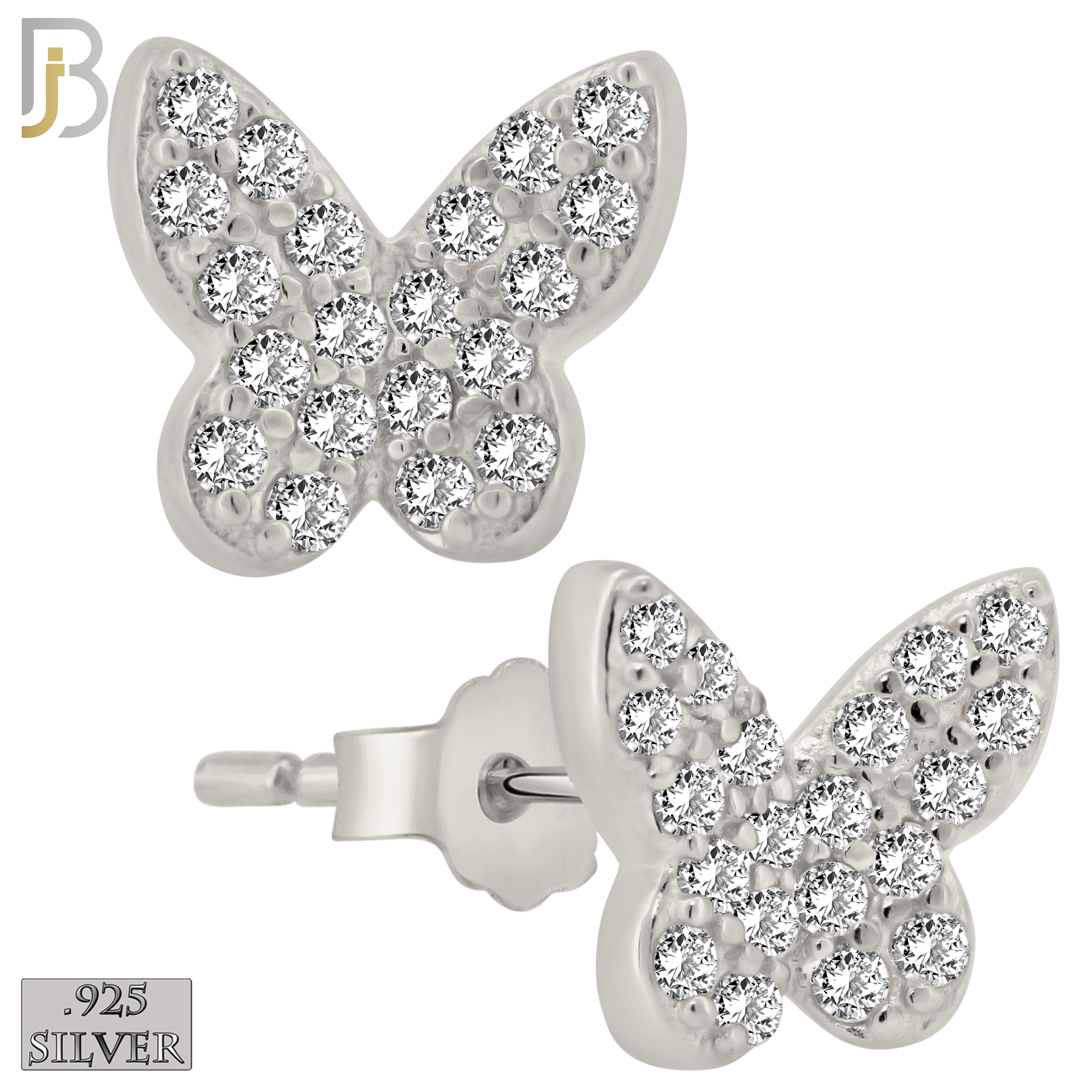 .925 Sterling Silver Butterfly with Multi CZ Stud Earrings