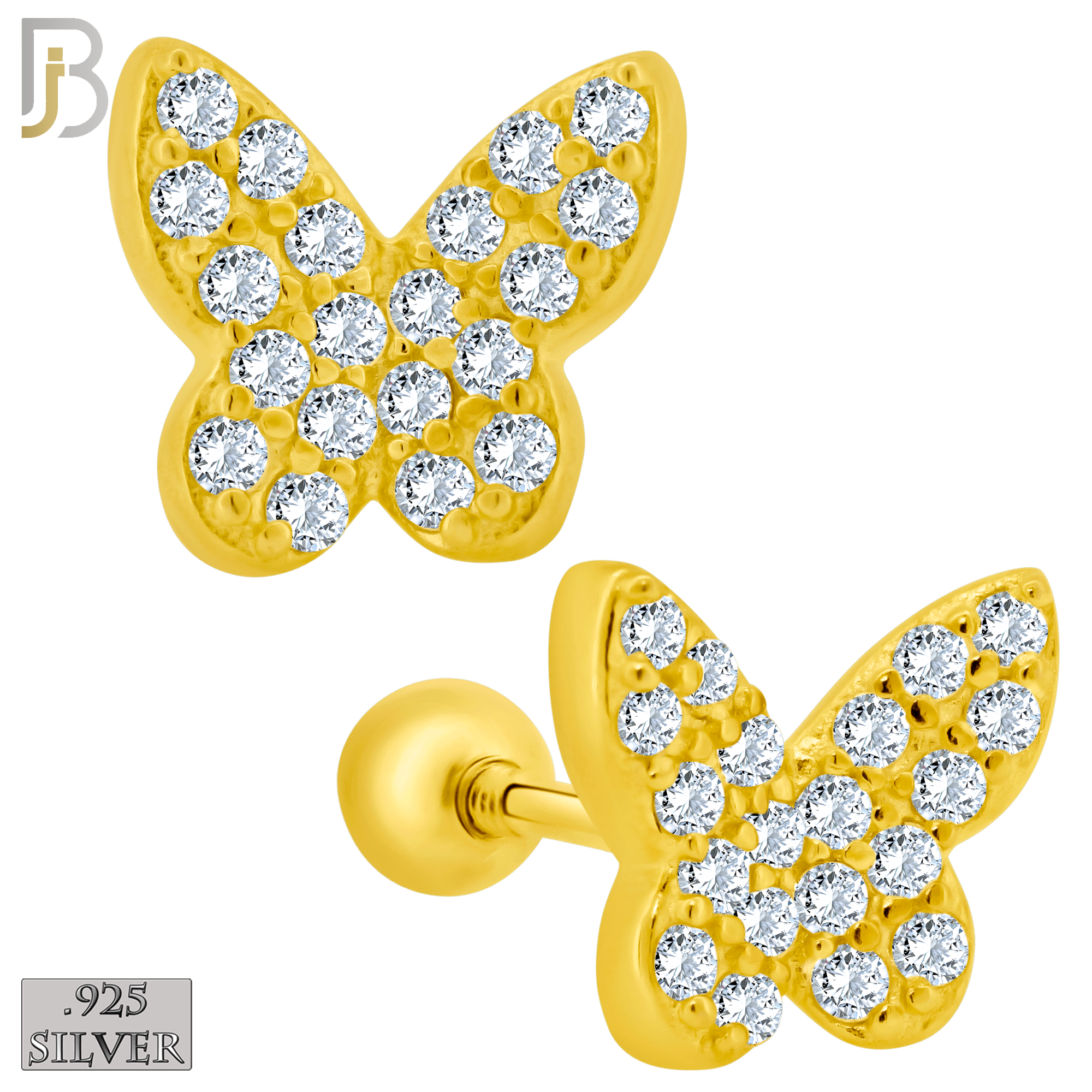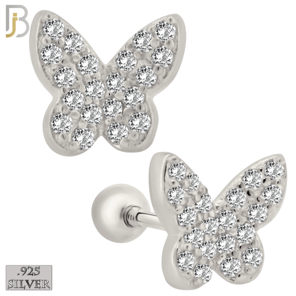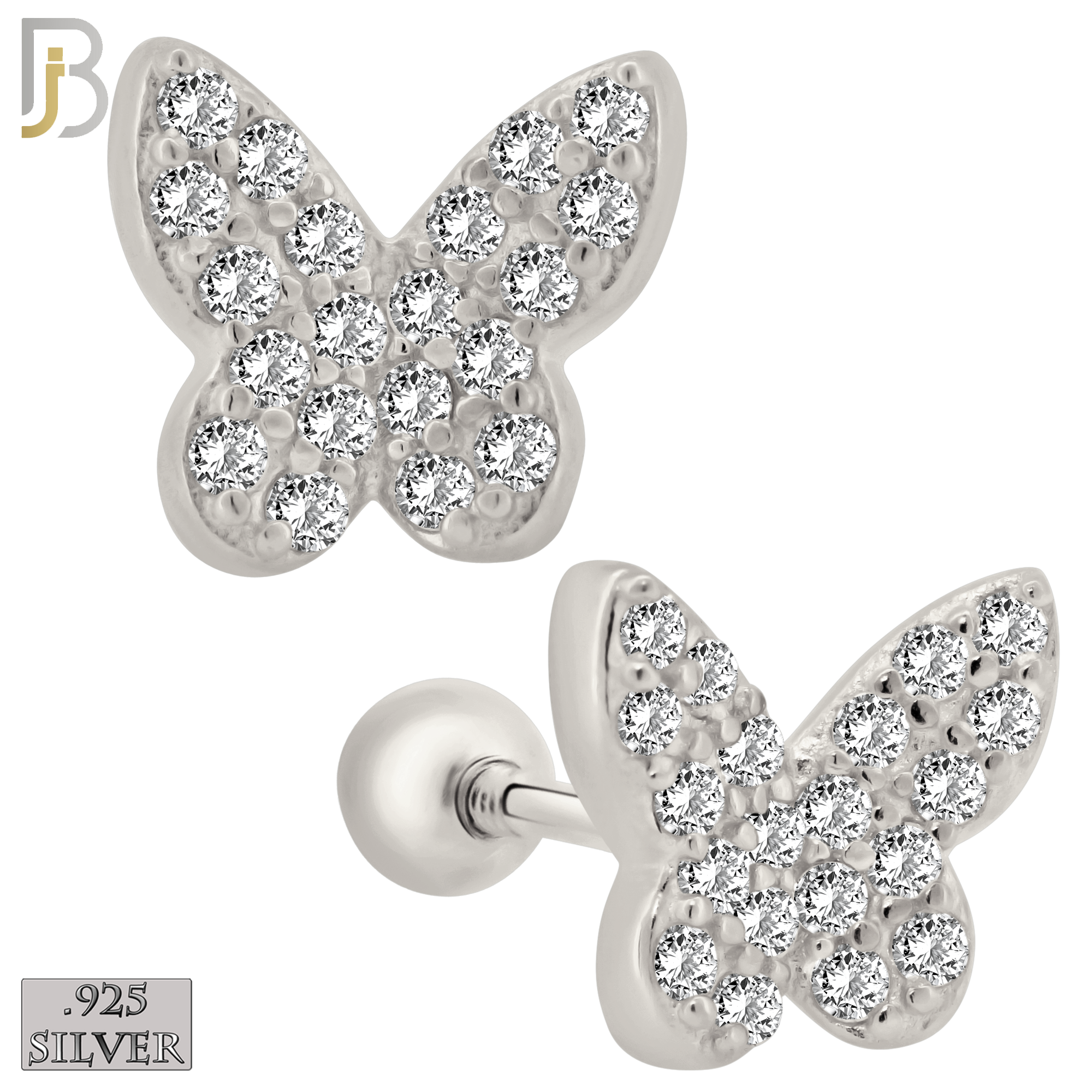 Screw Ball Back – .925 Sterling Silver Butterfly with Multi CZ Stud Earrings