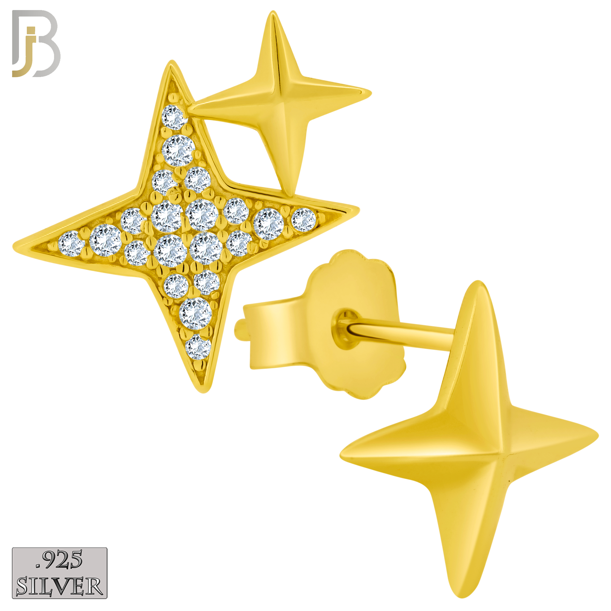 ES370 – Push Back – .925 Sterling Silver Four Point Star Mismatched Stud Earrings