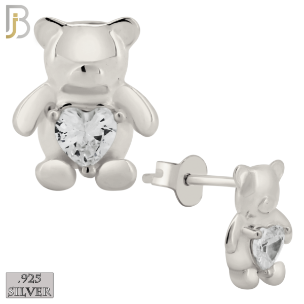 ES371 – Push Back – .925 Sterling Silver Bear with Heart Shaped CZ Stud Earrings
