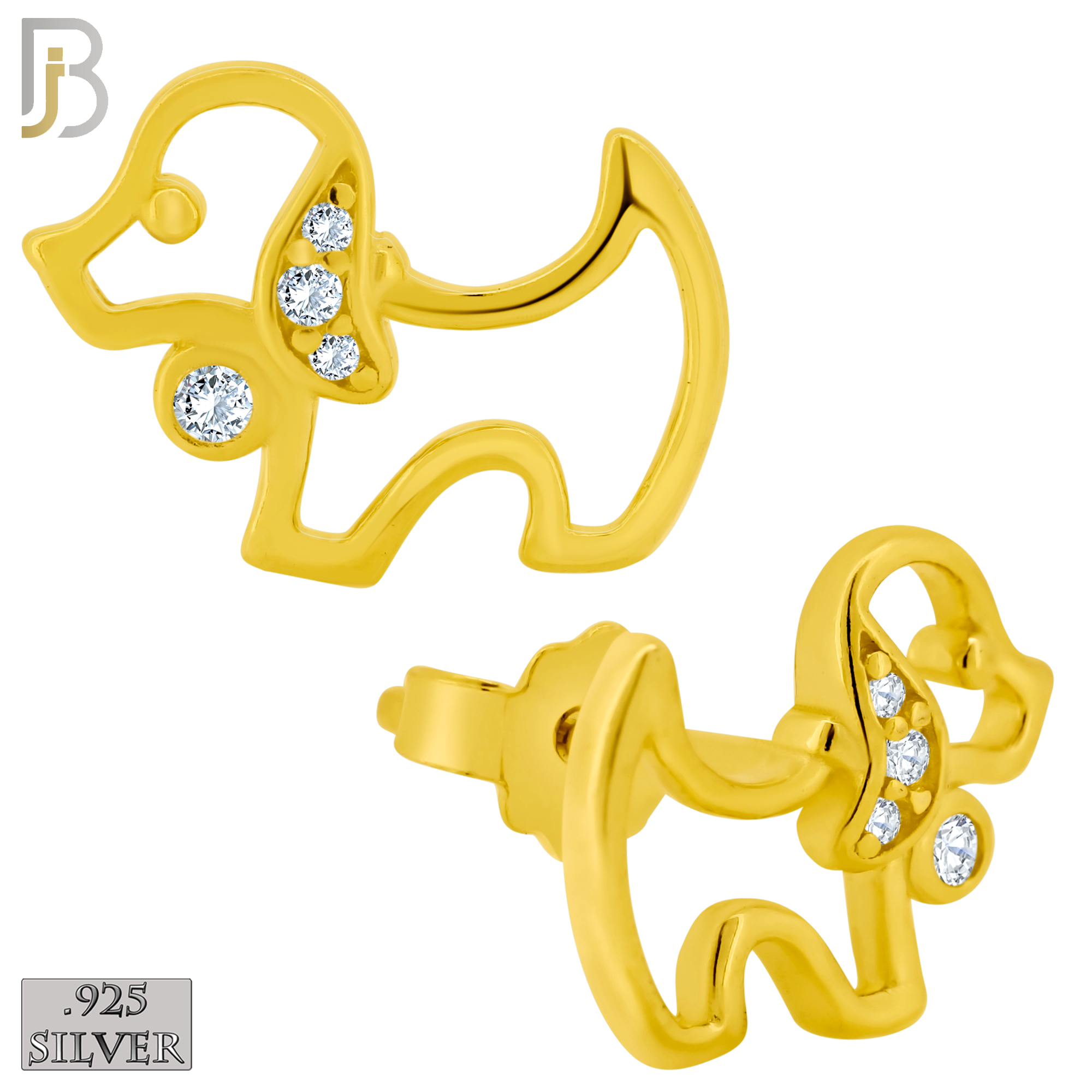 ES373 – .925 Sterling Silver Hollow Dog with CZ Stud Earrings
