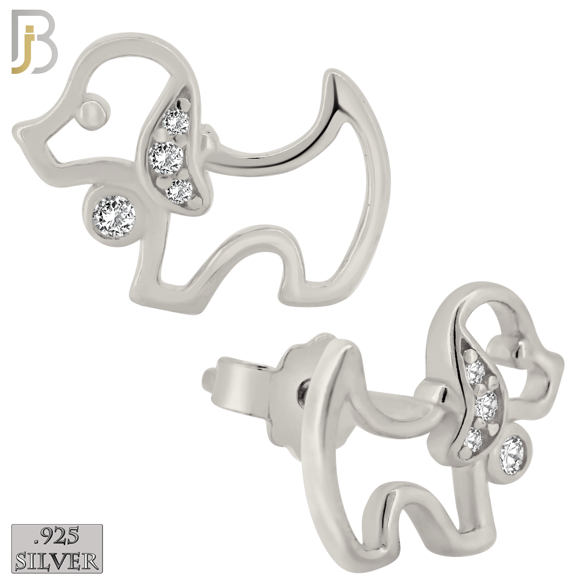 .925 Sterling Silver Hollow Dog with CZ Stud Earrings