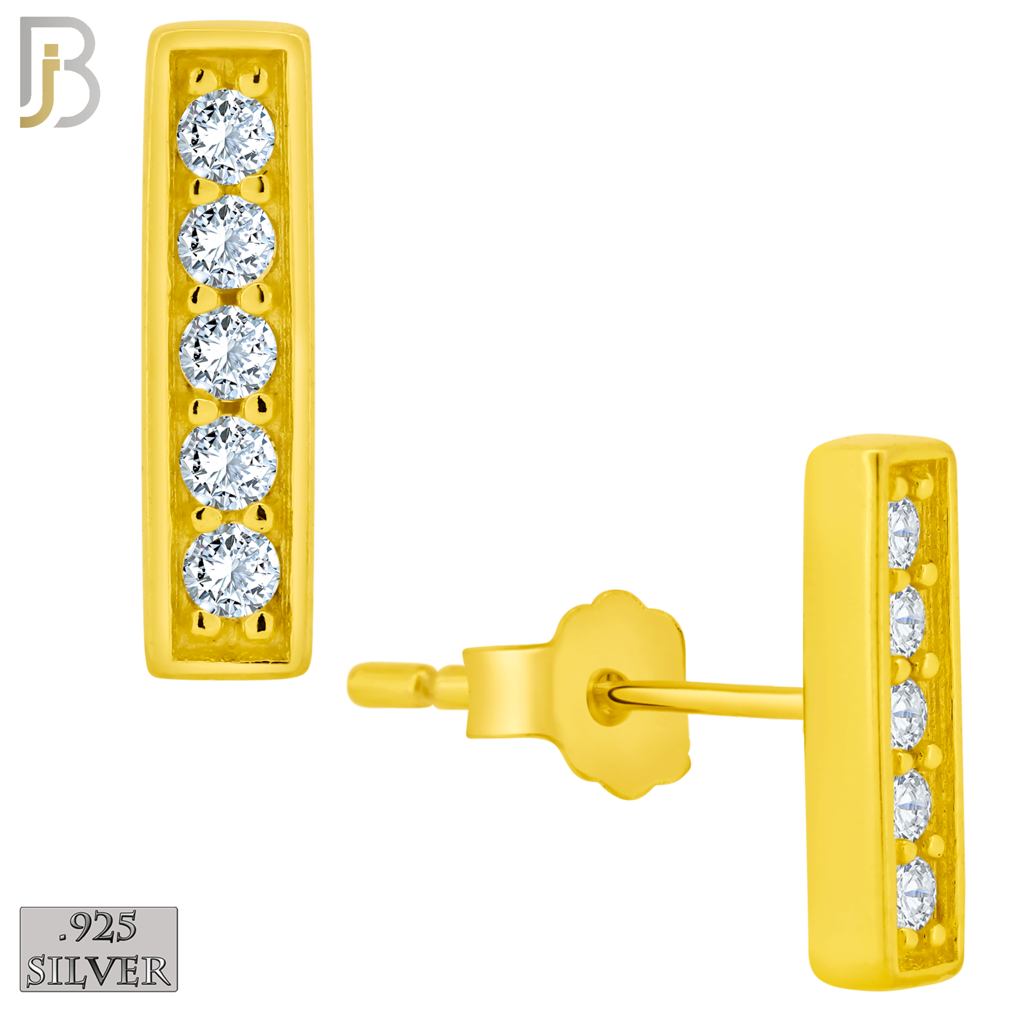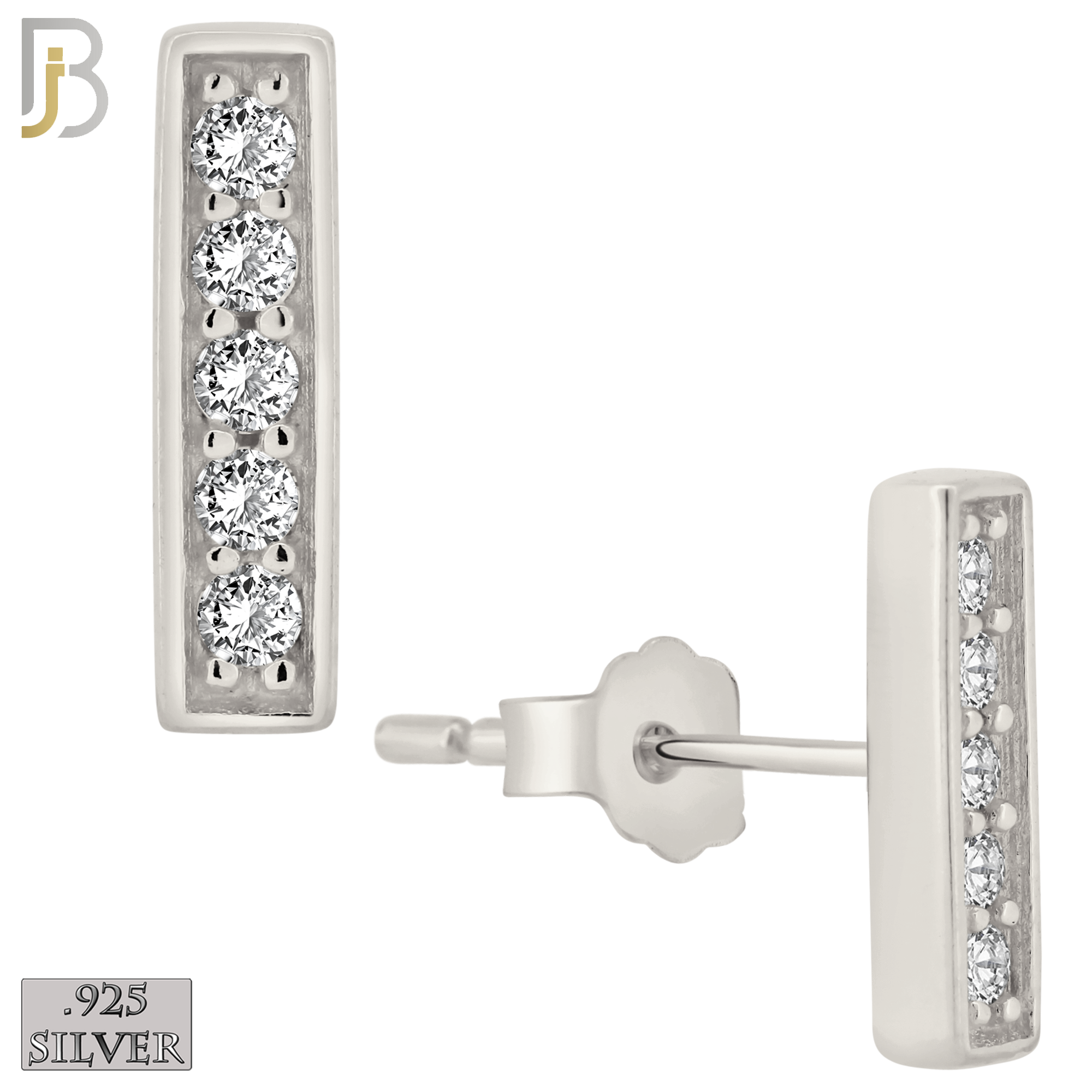 .925 Sterling Silver CZ Studded Bar Stud Earrings