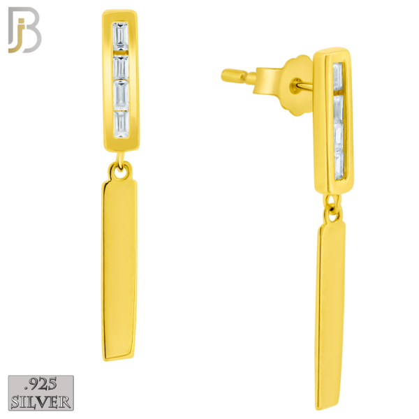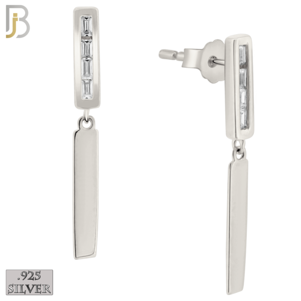 ES379 – .925 Sterling Silver Dangling Double Bars with CZ Stud Earrings