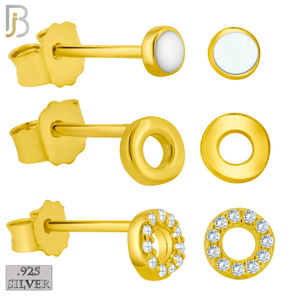 .925 Sterling Silver Three Set of Circle Stud Earrings (Plain Hollow Circle, CZ Studded Hollow Circle, Circle White Enamel)