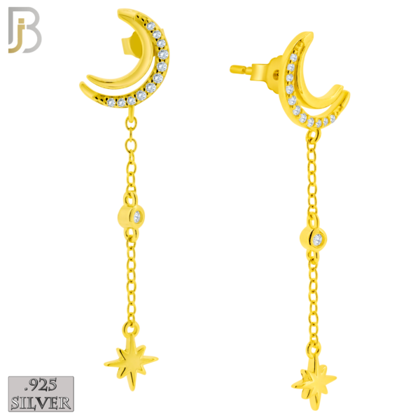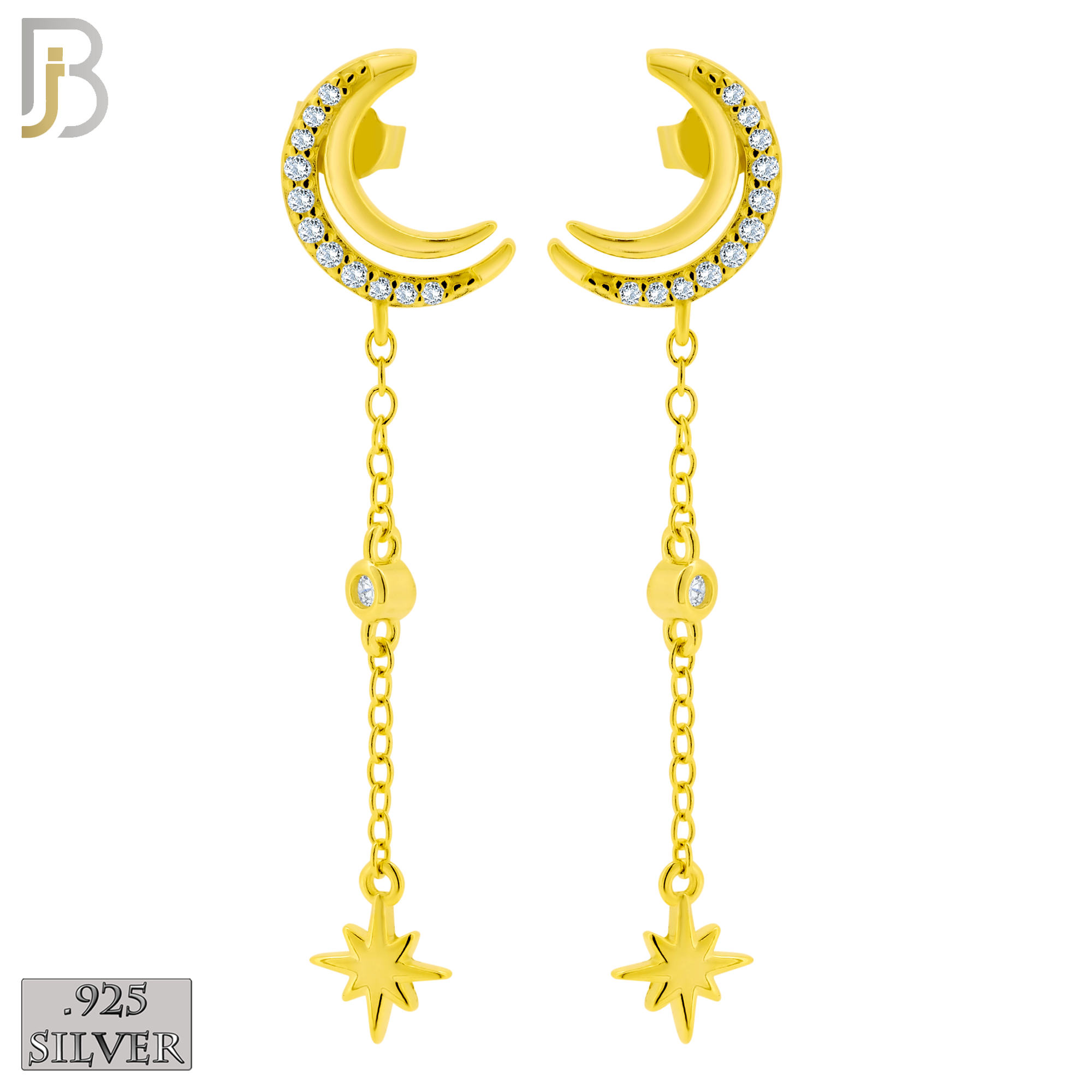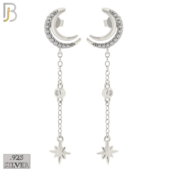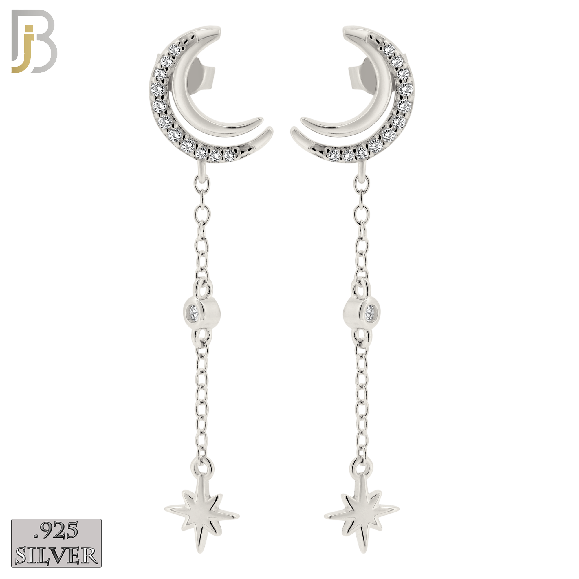 .925 Sterling Silver Moon with Dangling Starburst Drop