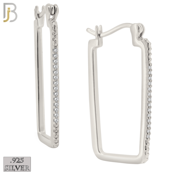 .925 Sterling Silver CZ Studded Longer Rectangular Hoop Earrings