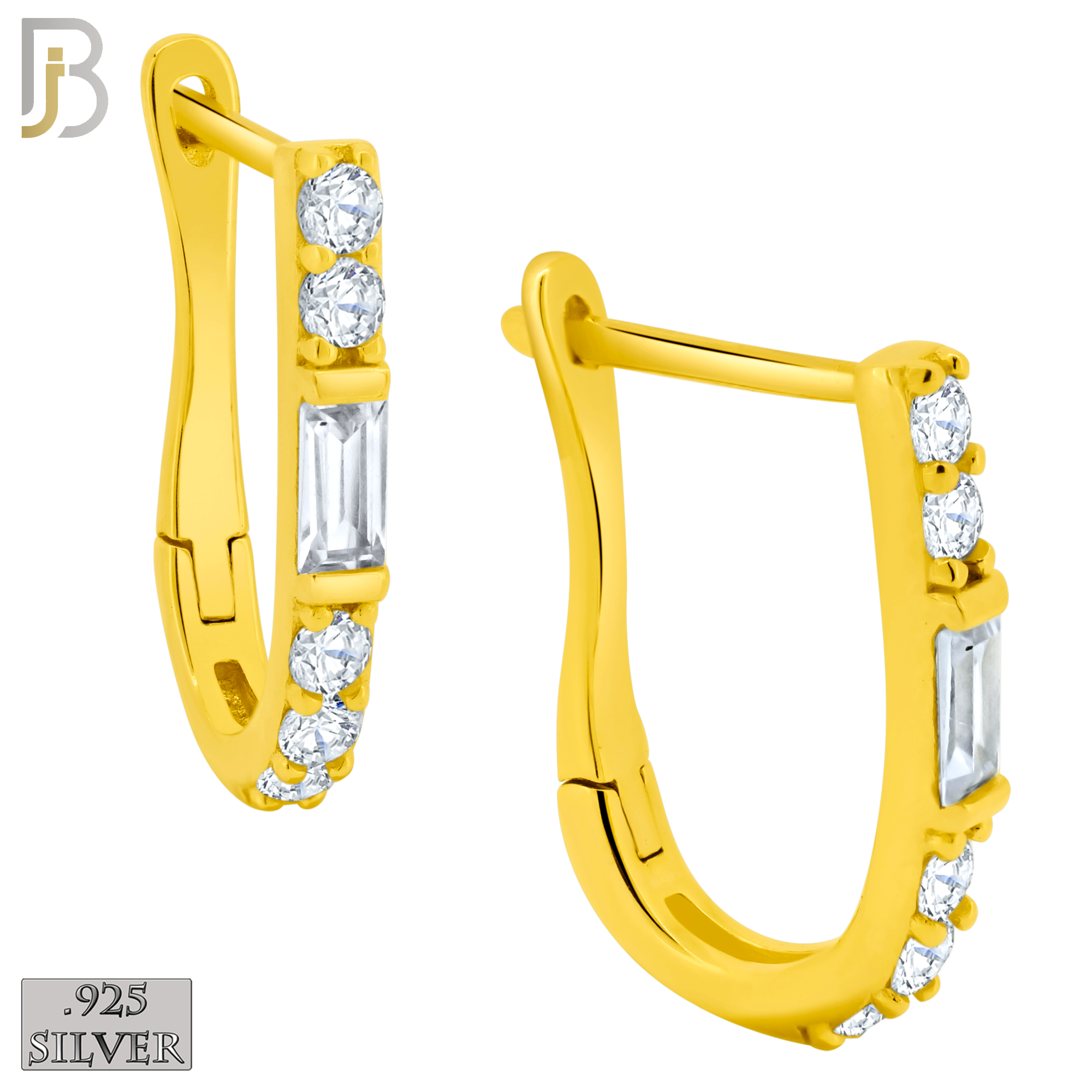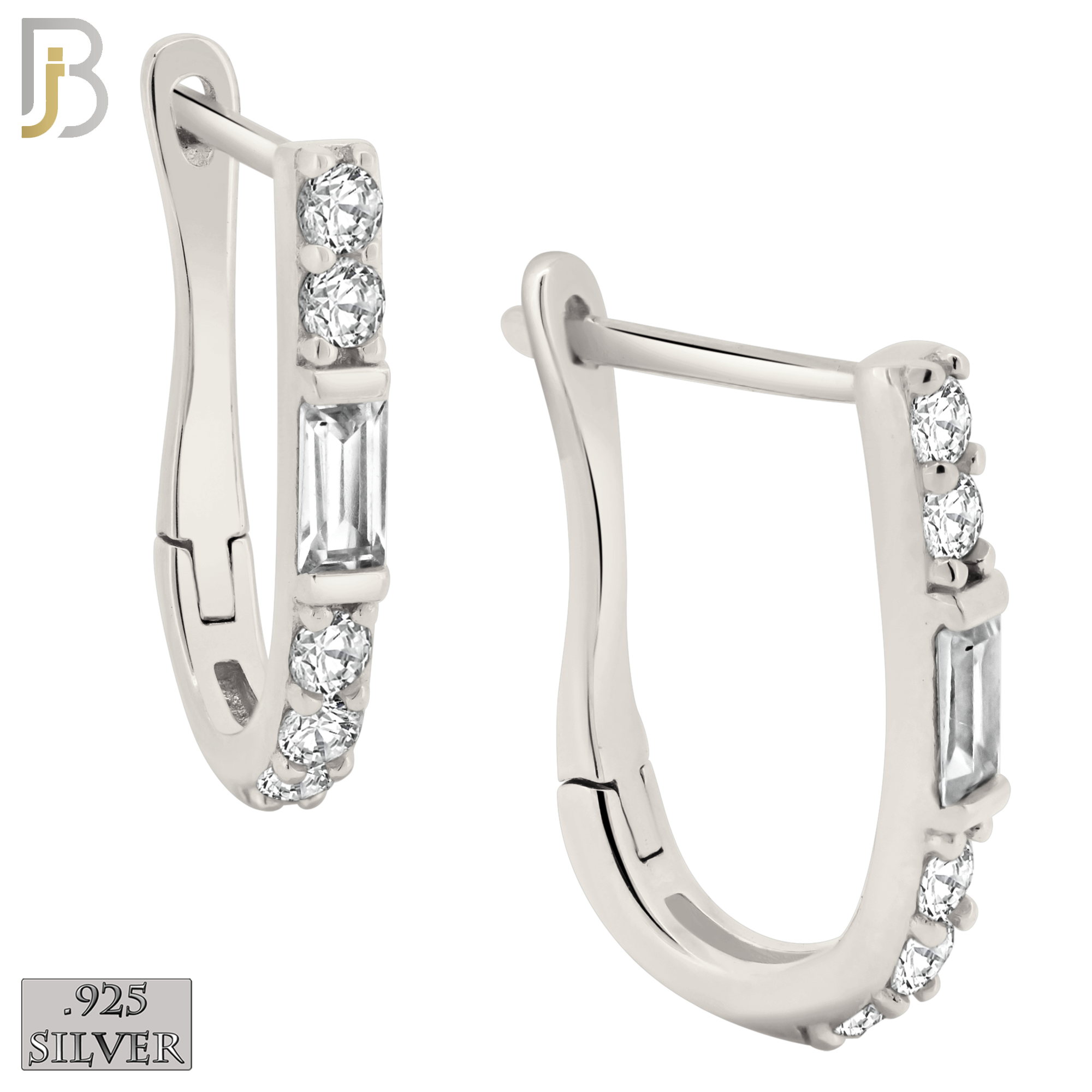 ES395 – .925 Sterling Silver Round and Baguette CZ Studded Hoop Earrings