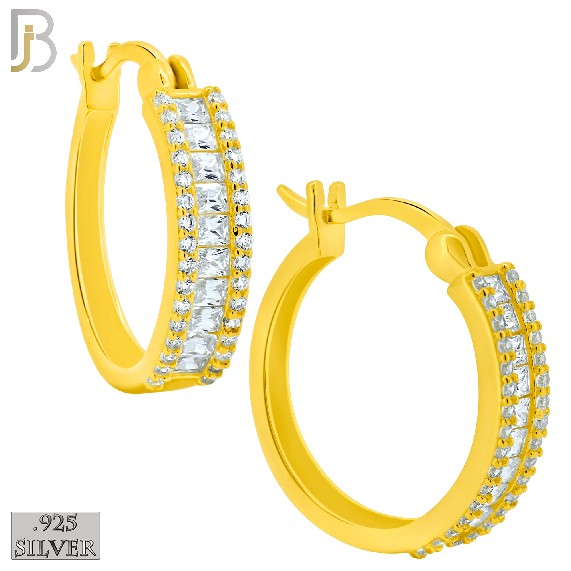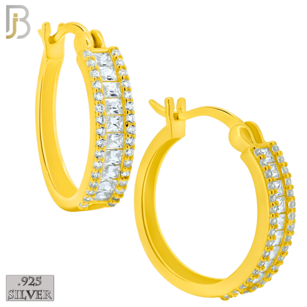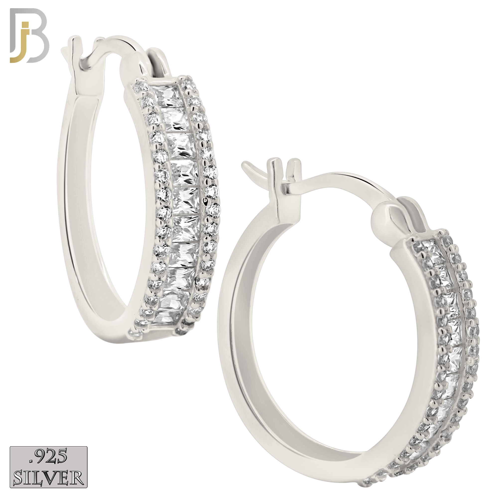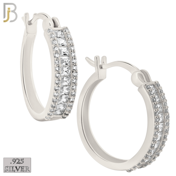 .925 Sterling Silver Baguette CZ Studded Hoop Earrings