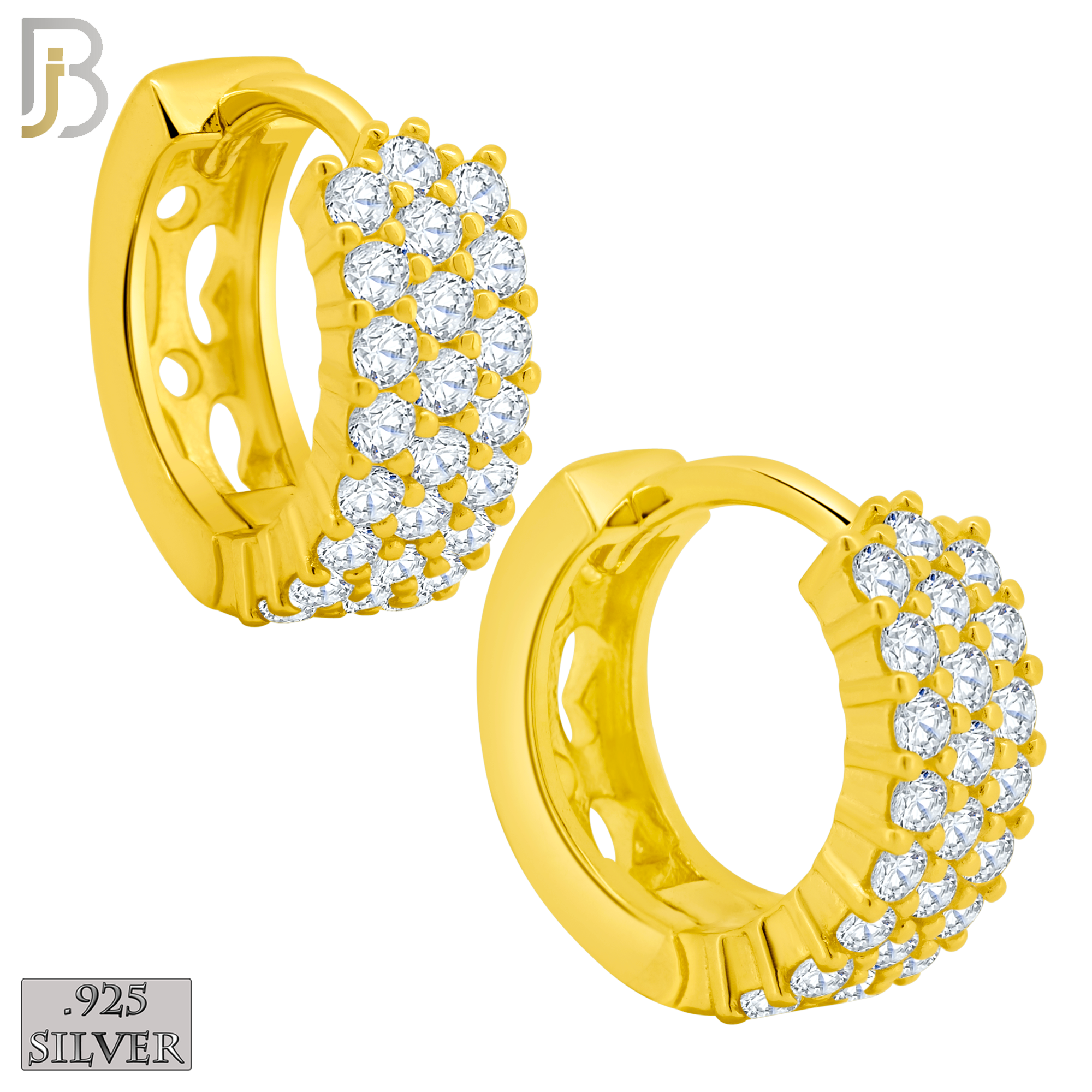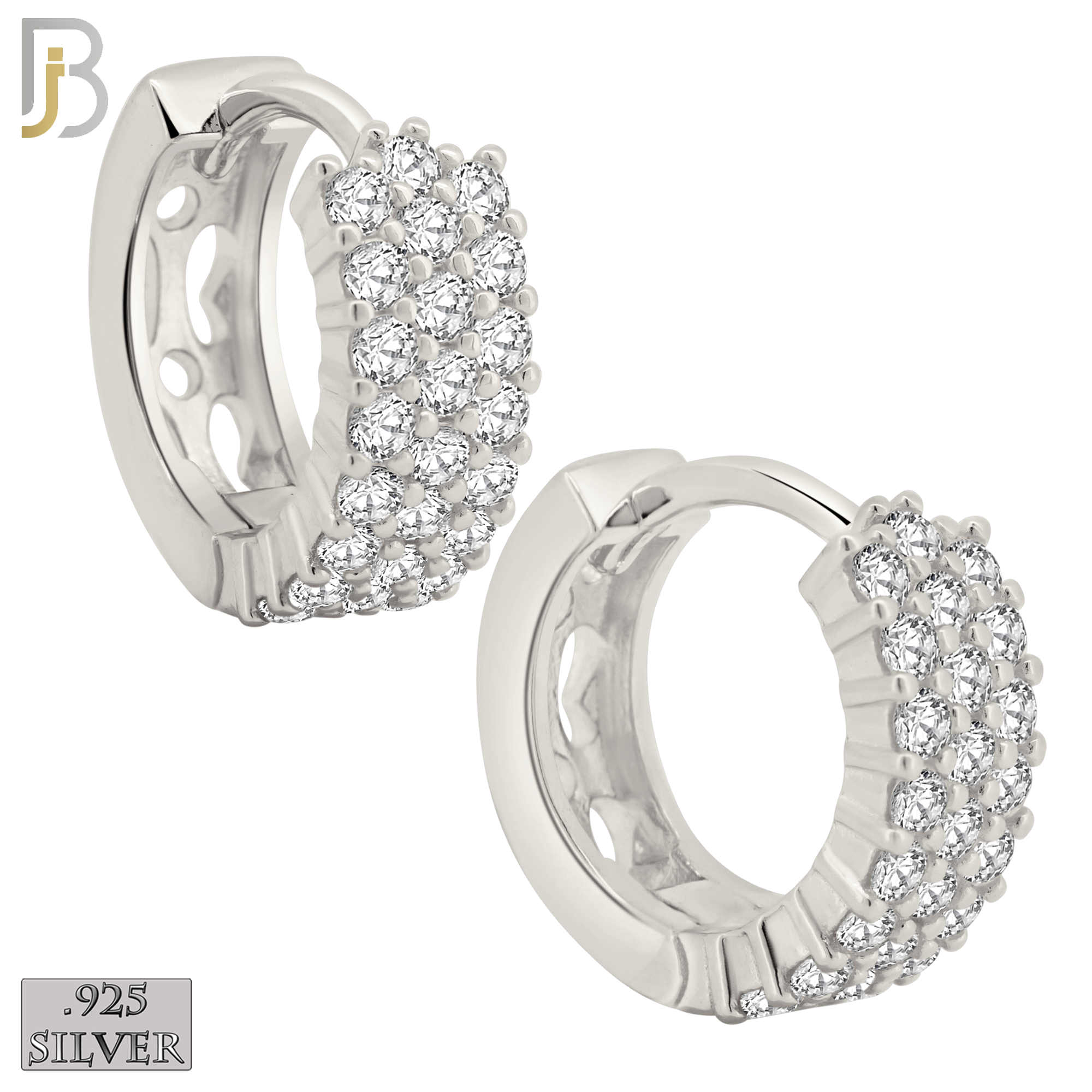 .925 Sterling Silver Three Rows CZ Studded Hoop Earrings