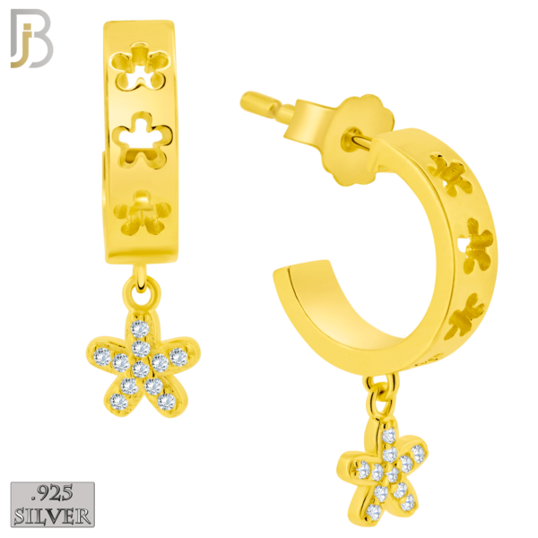 .925 Sterling Silver Dangling CZ Studded Star/Flower Half Hoop Earrings