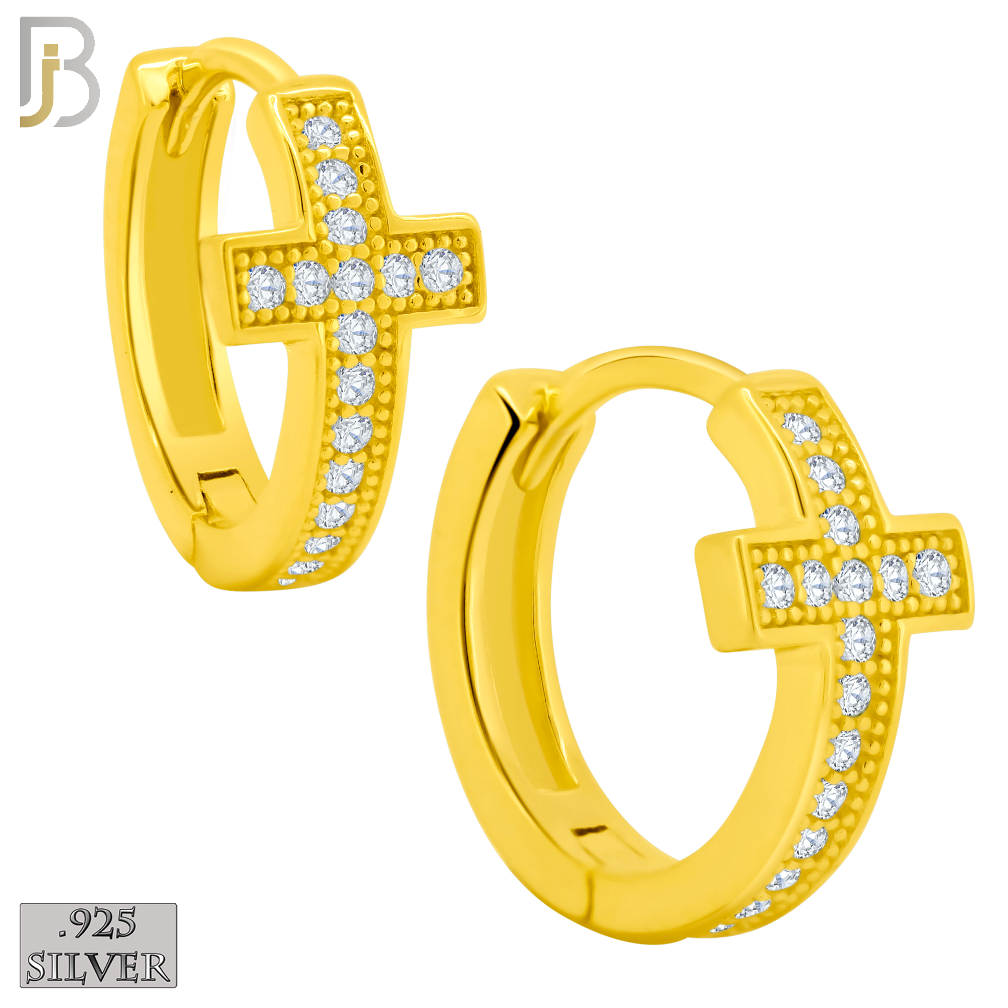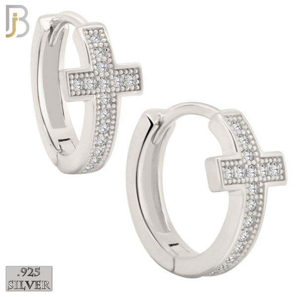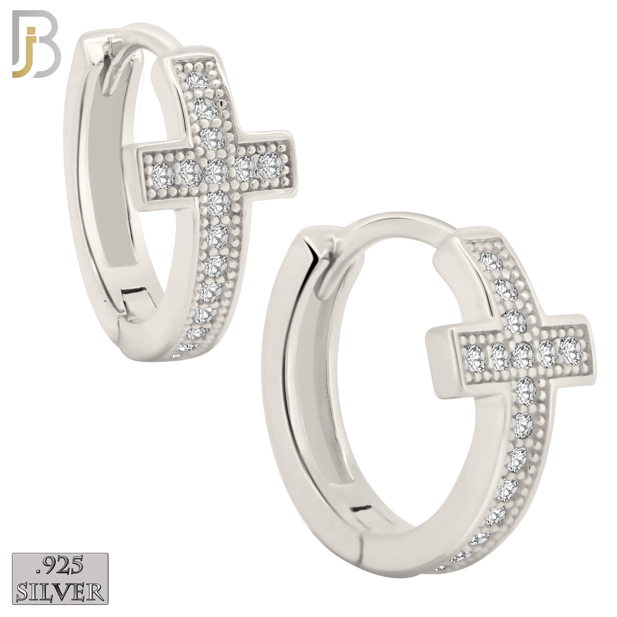 .925 Sterling Silver CZ Studded Cross Huggies Hoop Earrings