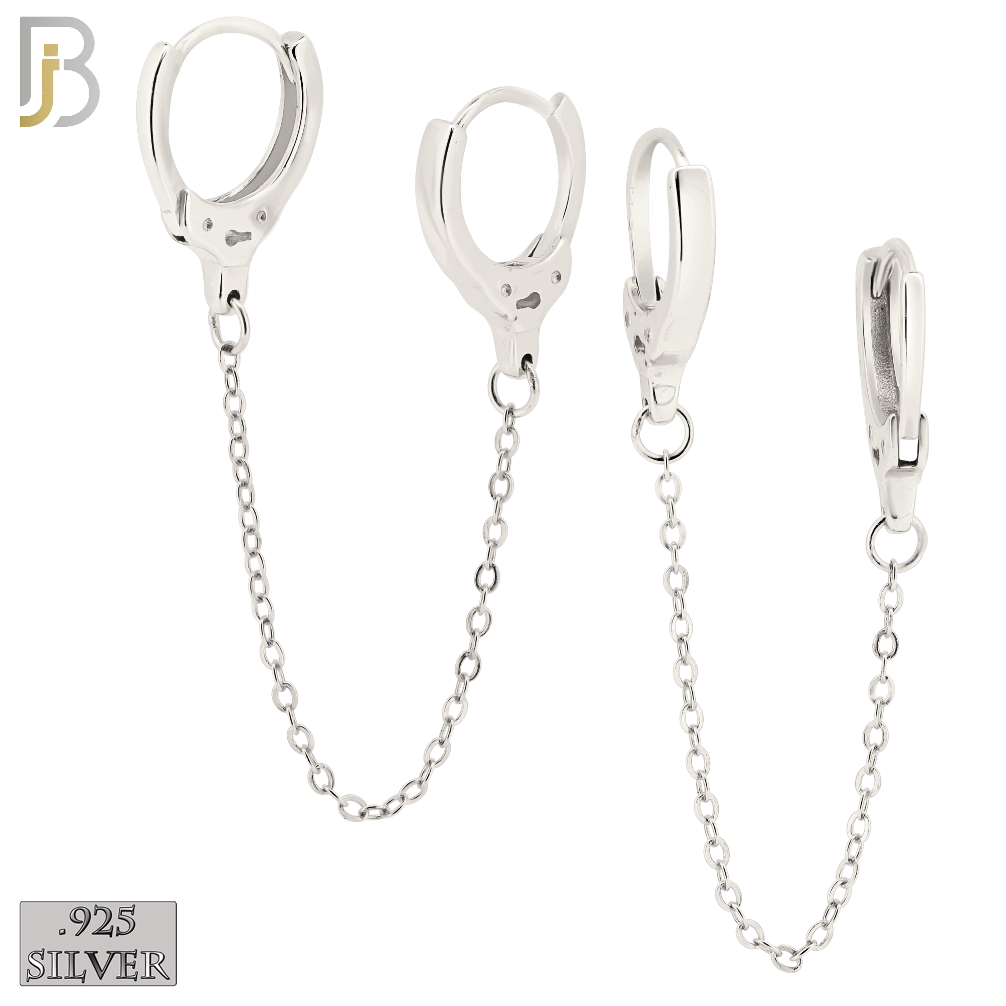 925 Sterling Silver Hand Cuffs Connector Huggies Hoop Earrings