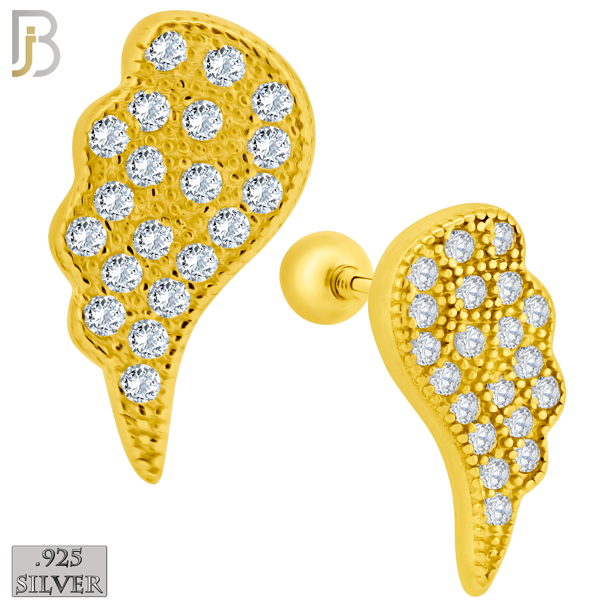 Design: 925 Sterling Silver CZ Studded Angel Wings Stud Earrings