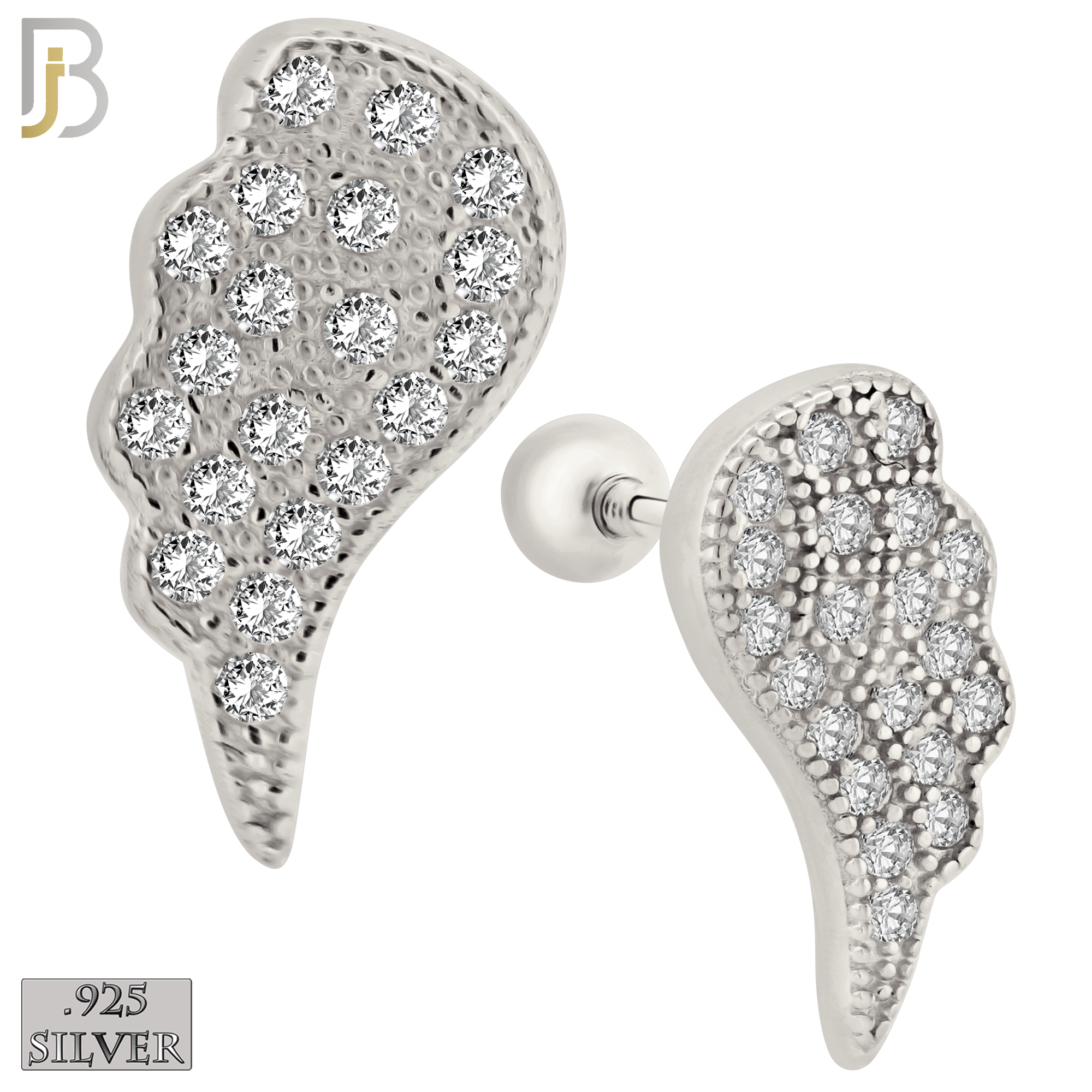Screw Ball Back – 925 Sterling Silver CZ Studded Angel Wings Stud Earrings