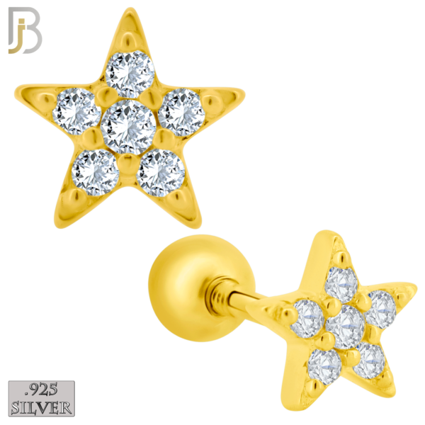 Screw Ball Back – 925 Sterling Silver 5mm Star with Multi CZ Stud Earrings
