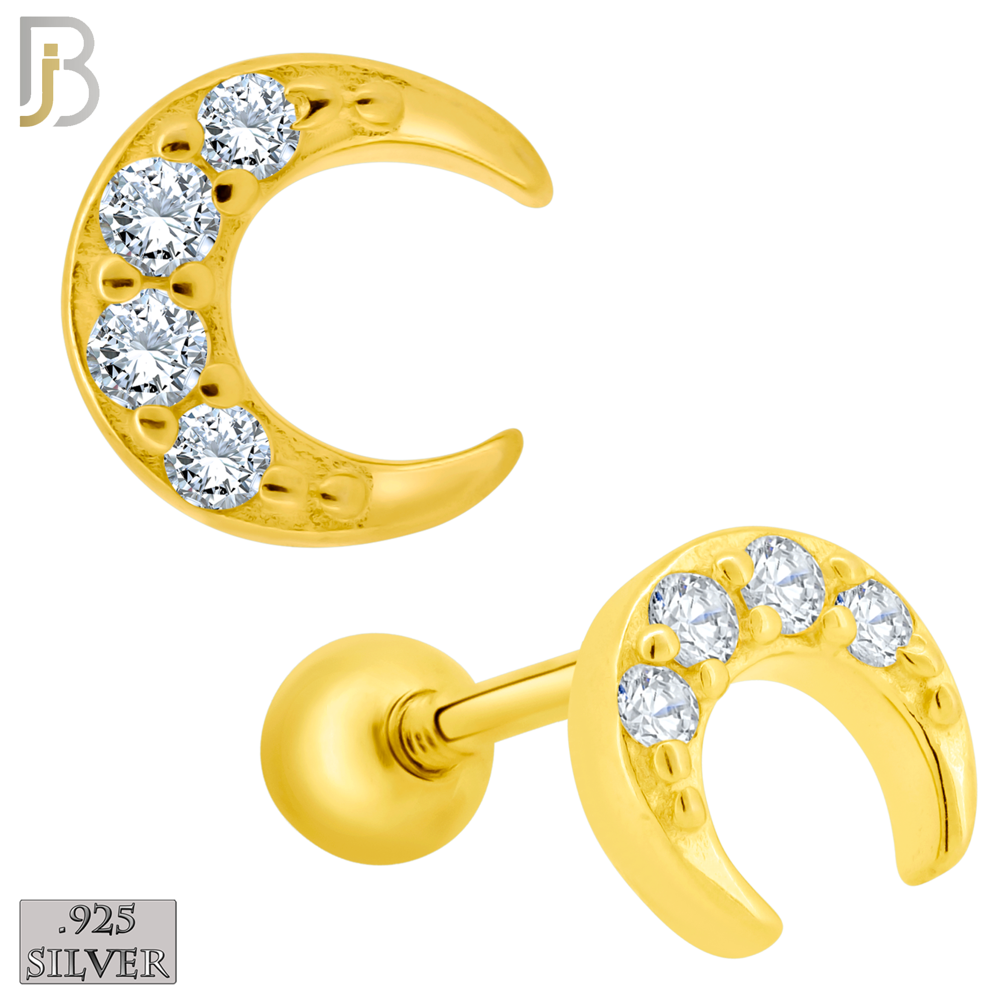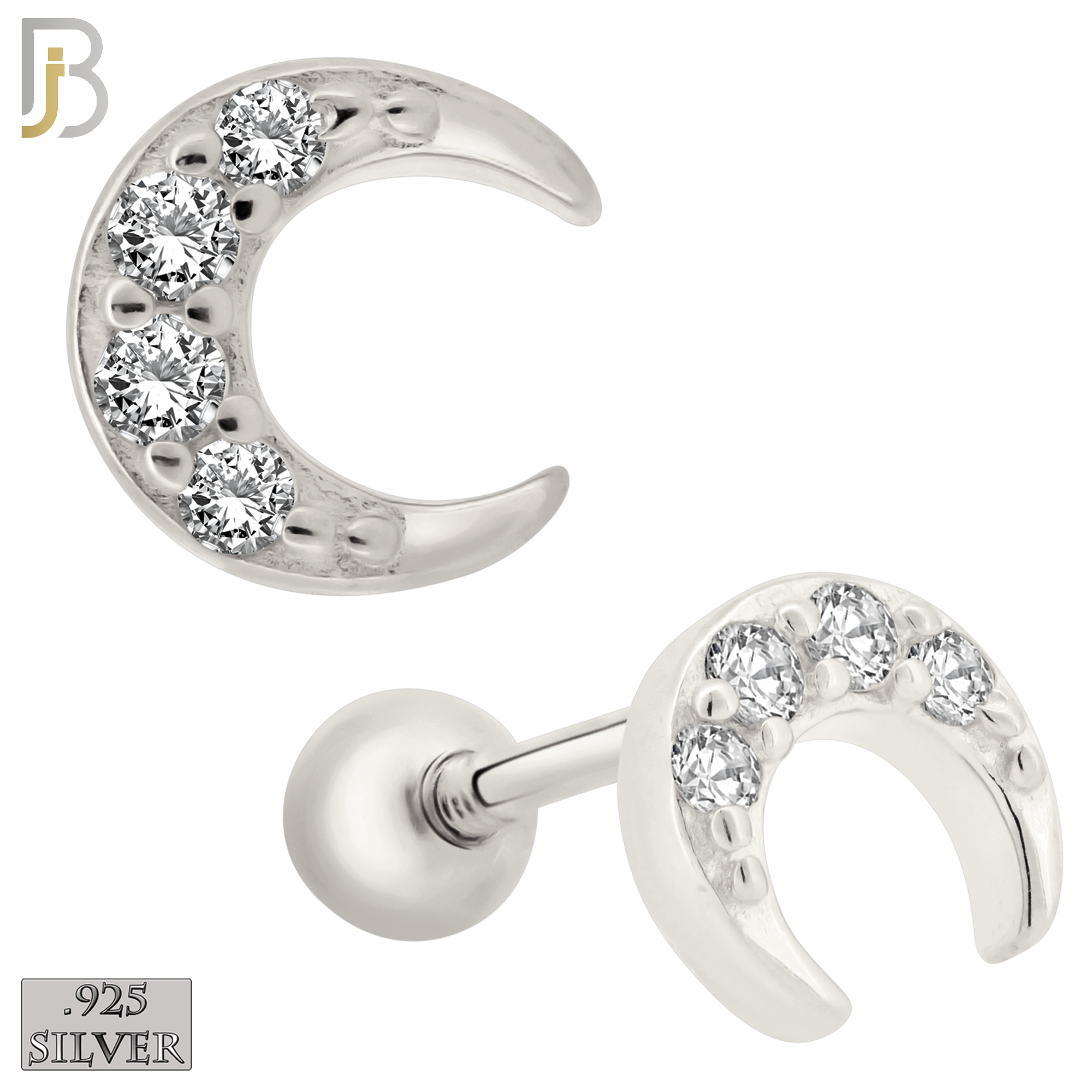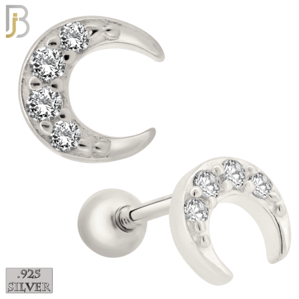 Screw Ball Back – 925 Sterling Silver 5mm Moon with Multi CZ Stud Earrings