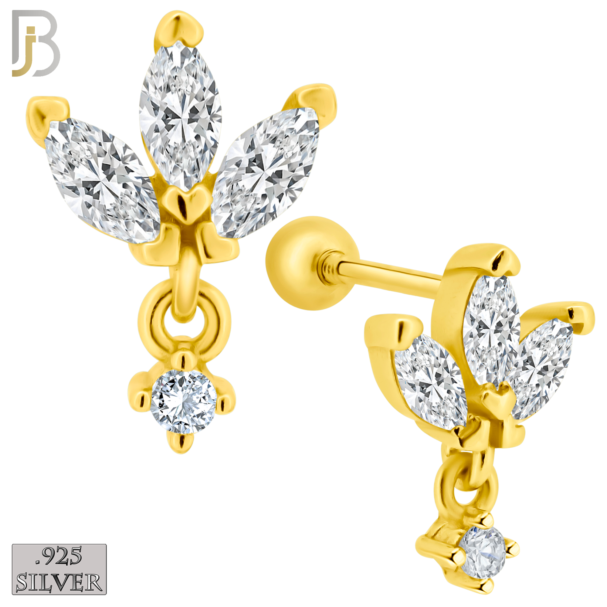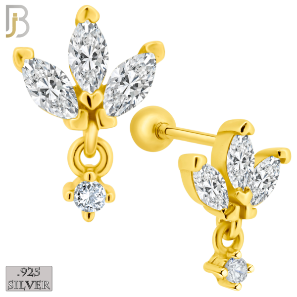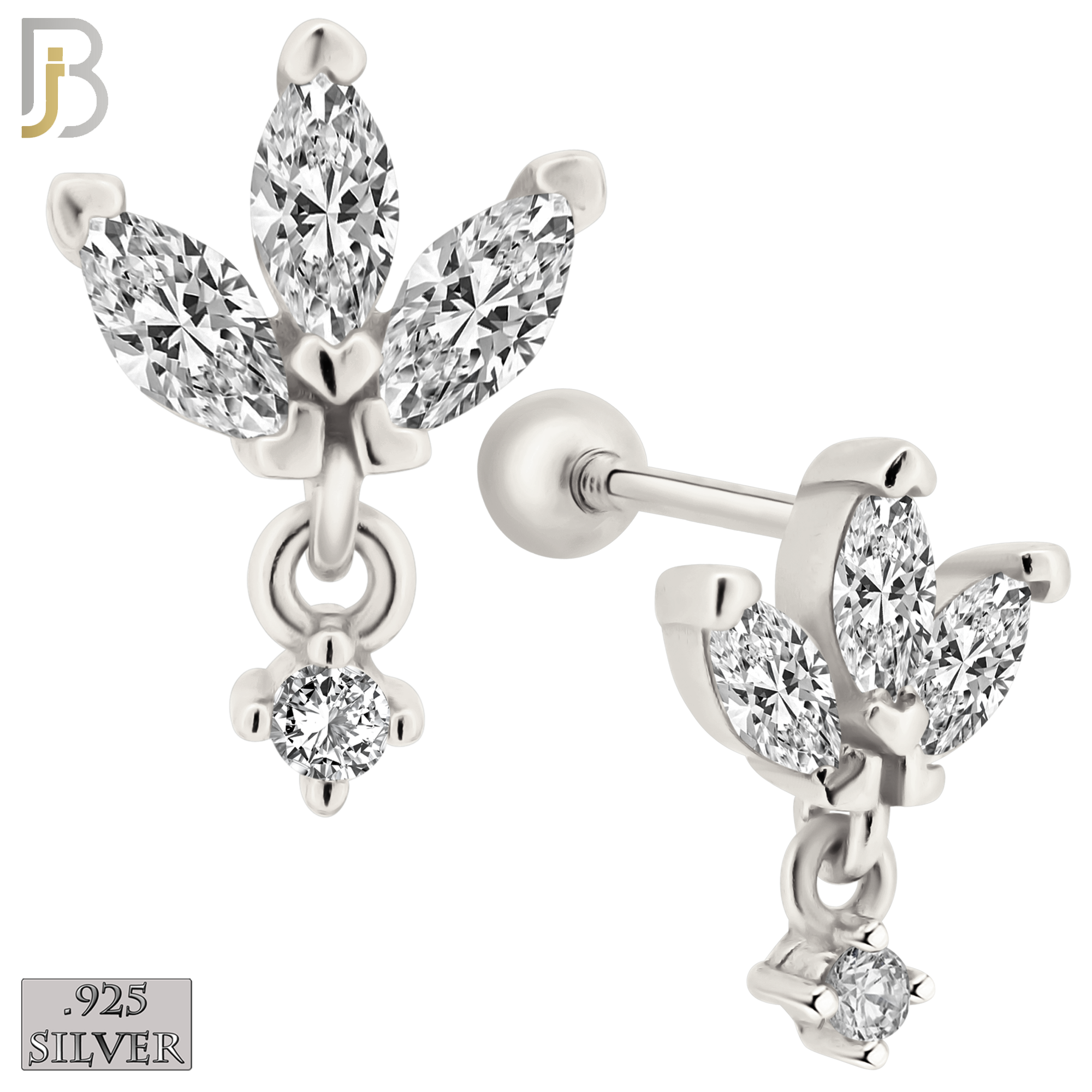 Screw Ball Back – 925 Sterling Silver Three Leaf Stud Earrings with Dangling Zircon