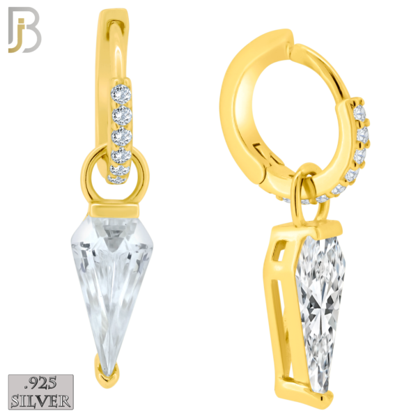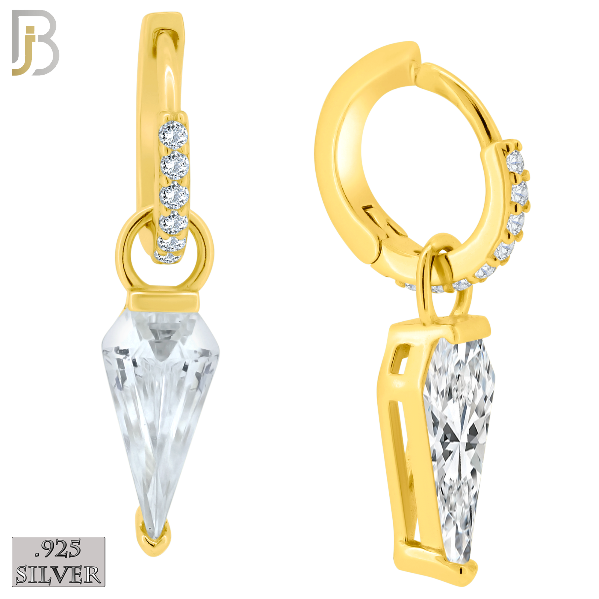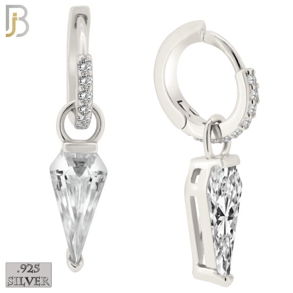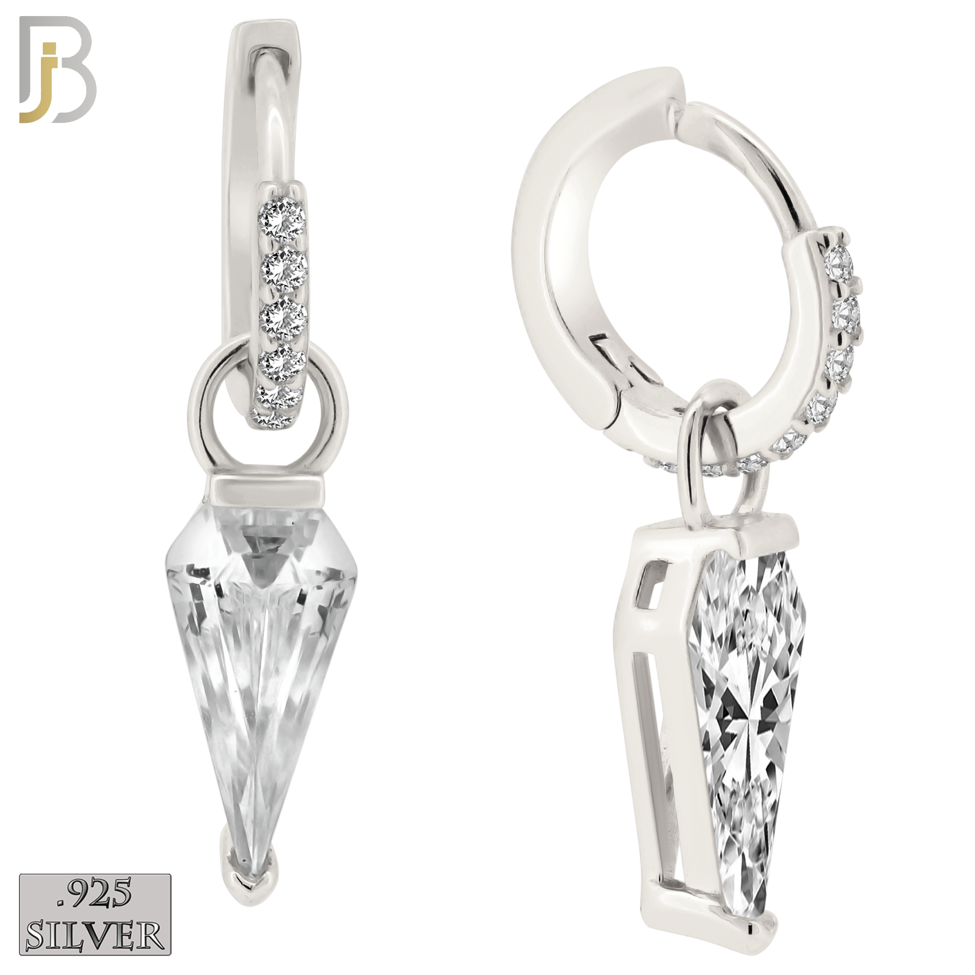 925 Sterling Silver Dangling Elongated Pentagon Shaped CZ Huggies Earrings