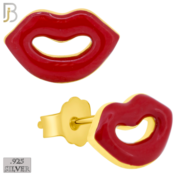 Push Back – .925 Sterling Silver Red Enamel Lips Earrings Stud Earrings