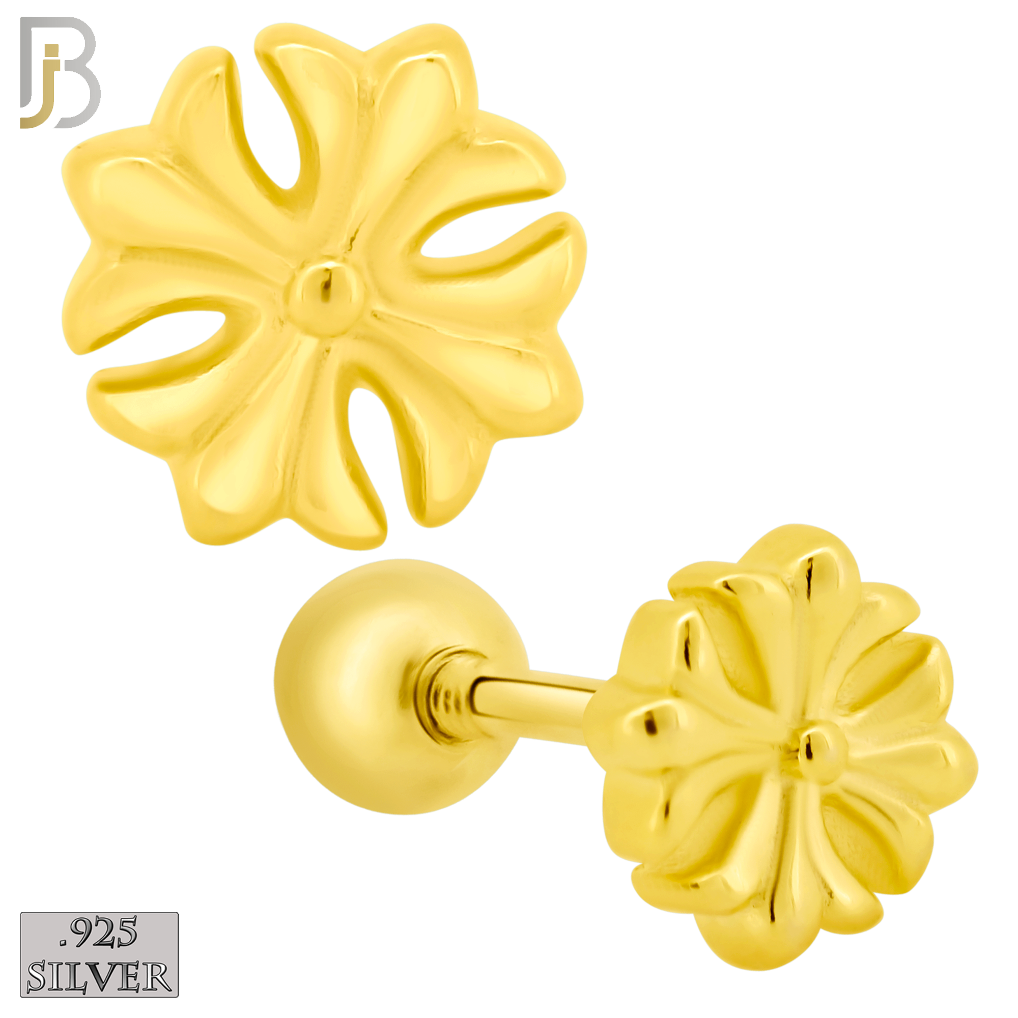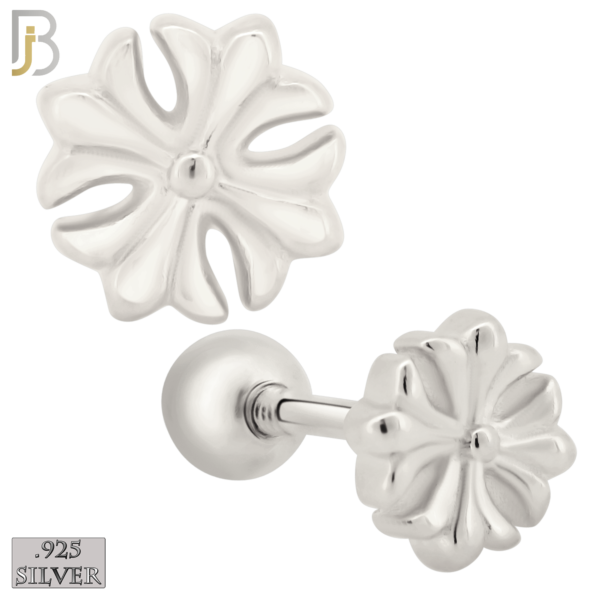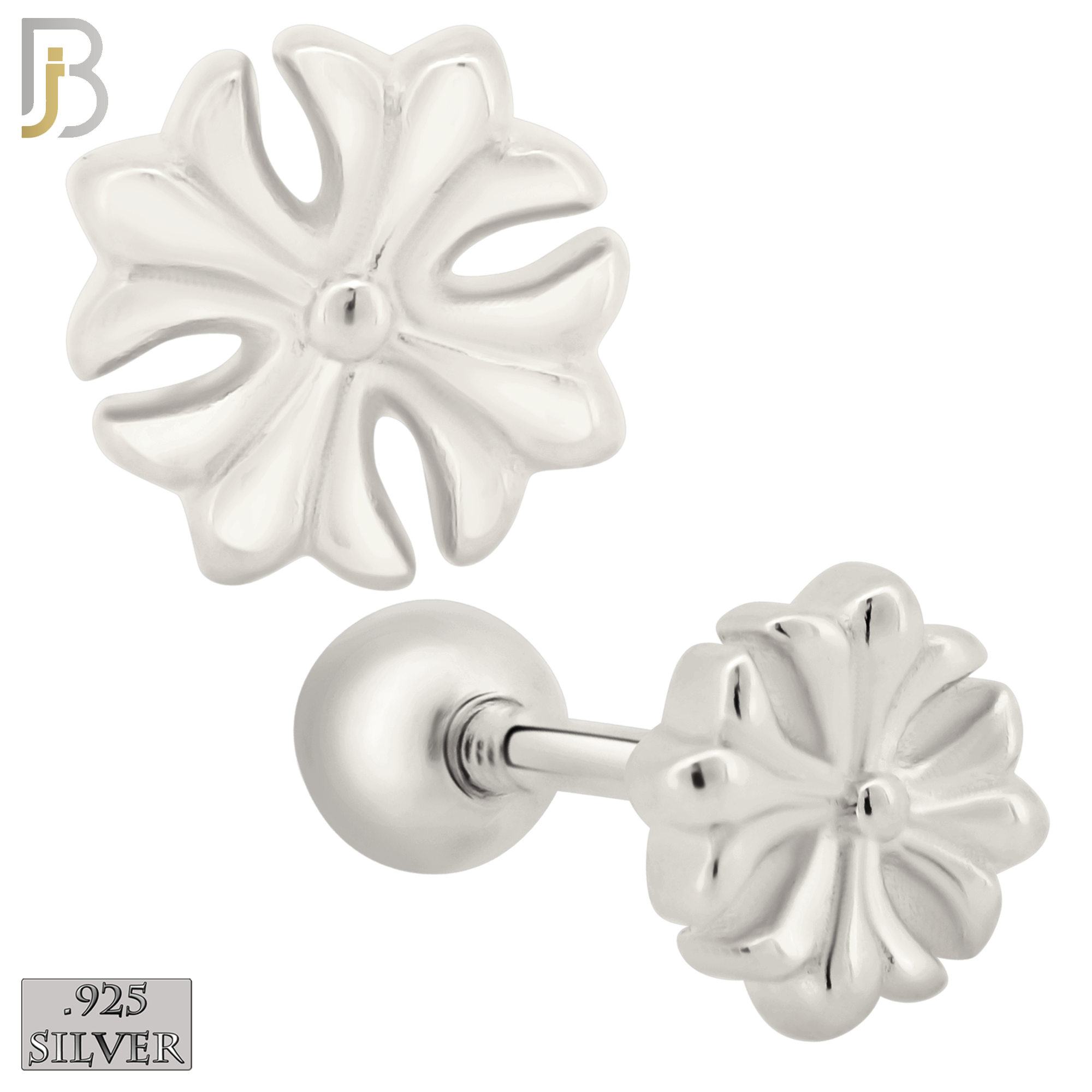 Screw Ball Back – .925 Sterling Silver Four Fleur-de-lis Earrings Stud