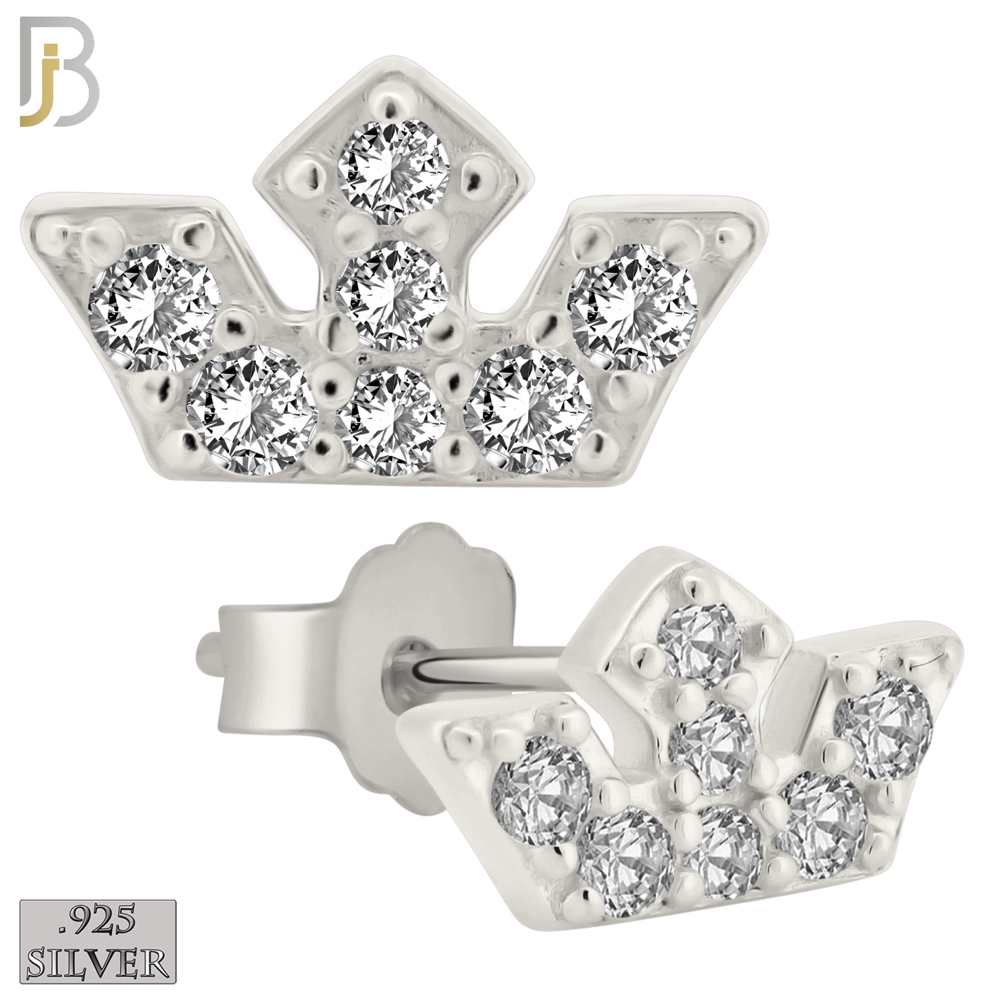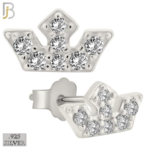 Push Back – .925 Sterling Silver Three Point Crown with Multi Zircon Earrings Stud